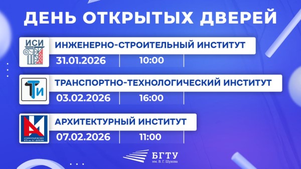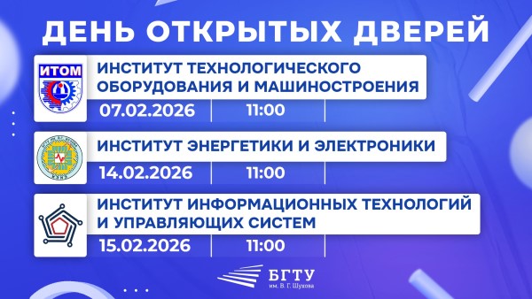 Хотите узнать всё о поступлении, направлениях обучения и студенческой жизни в ведущем технологическом вузе? Тогда ждём вас на Днях открытых дверей БГТУ им. В.Г. Шухова!