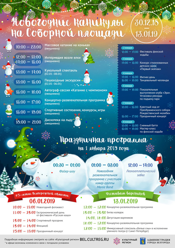 Афиша новогодних мероприятий на Соборной площади Белгорода