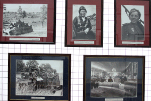 Фотографии, сделанные военными фотографами в 1943 году в районе Курской битвы. Здесь и портреты героев, и снимки, отражающие отдельные события военного времени. Колонна пленных немцев уныло плетется по бескрайним равнинам нашего края. Саперы налаживают переправу через Северский Донец. Санитары и медсестры оказывают помощь на поле боя. Собачьи упряжки перевозят санитарное оборудование. И за каждой такой фотографией целый рассказ о подвигах, о доблести, о славе.