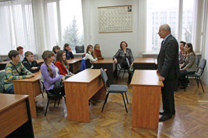 Директор института строительного материаловедения и техносферной безопасности, д.т.н., профессор В.И. Павленко рассказал о специальностях и институте в целом, а доцент кафедры неорганической химии Л.Н..Наумова показала лаборатории, где занимаются студенты.
