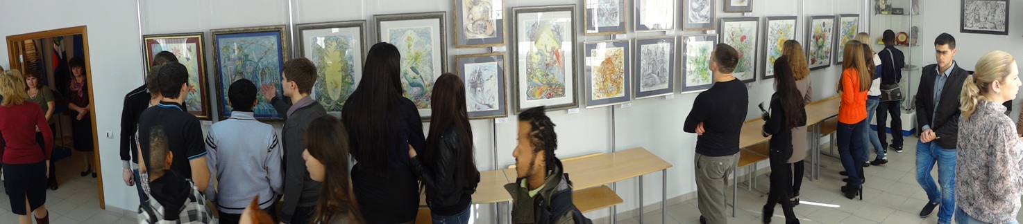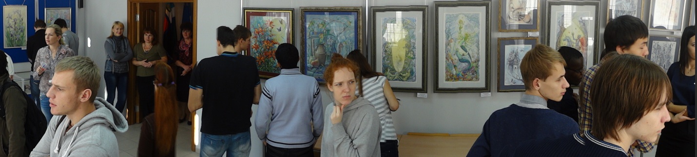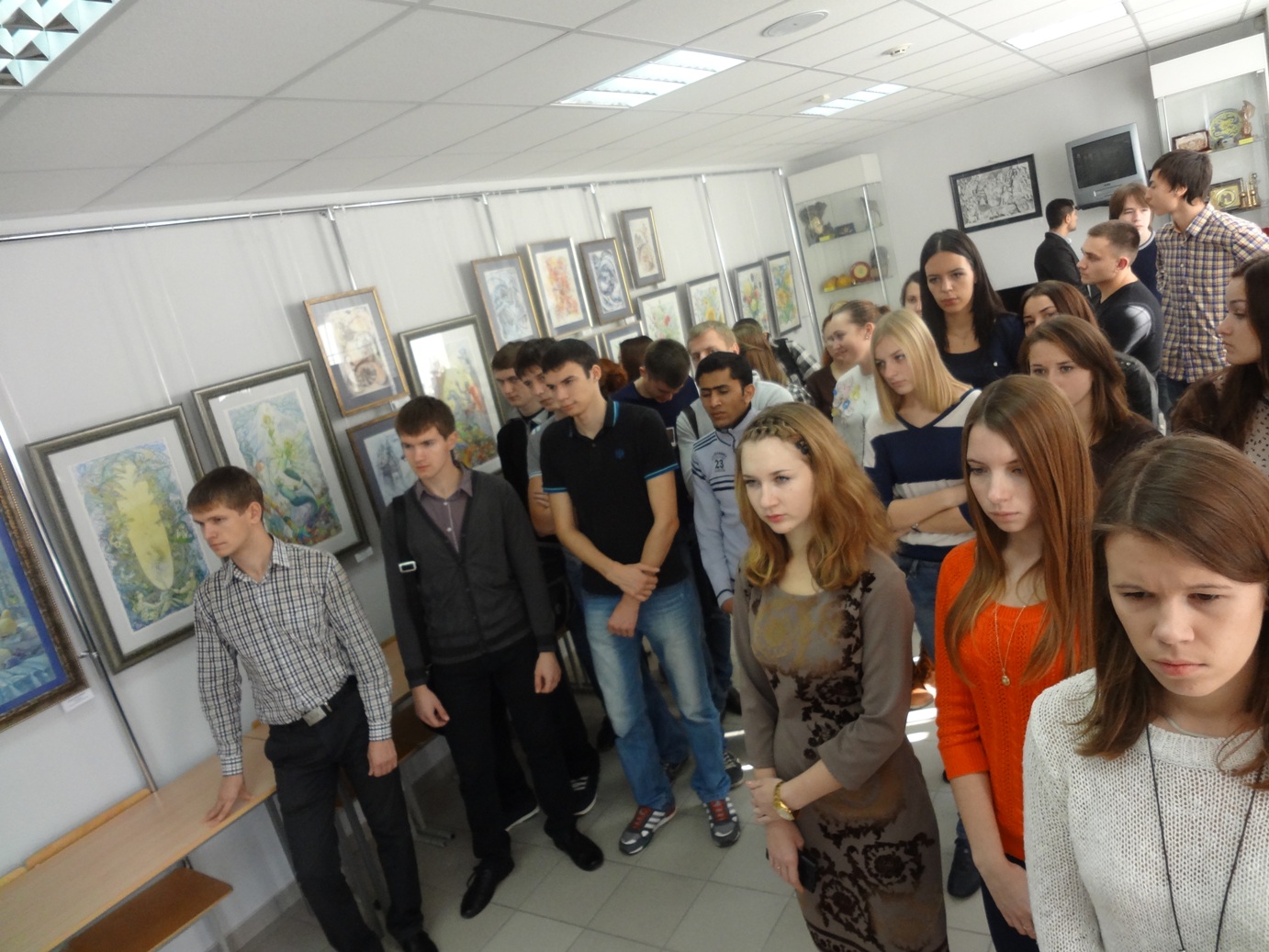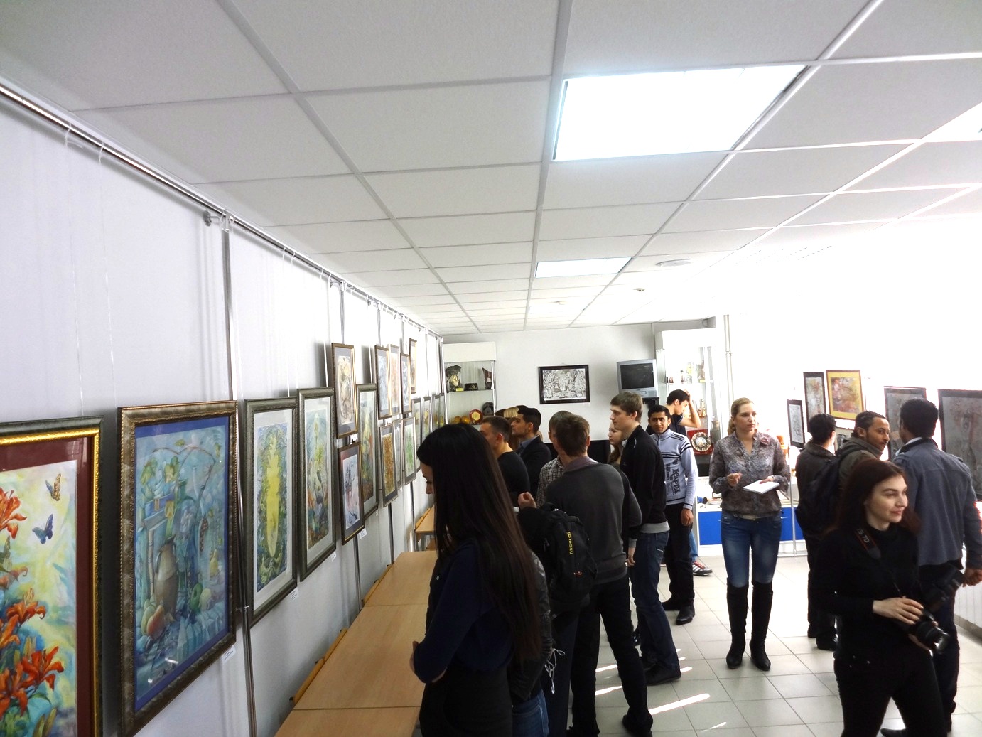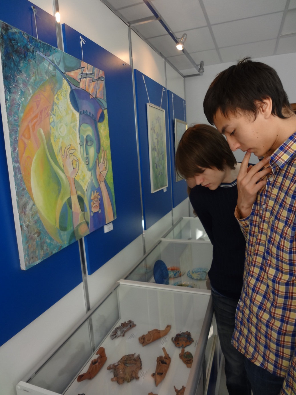 Студенты, посетившие выставку «Два окна», в немом восхищении замирали перед великолепными полотнами. И это неудивительно. Оригинальная техника, глубокая смысловая нагрузка и художественный талант – поистине великолепный коктейль, который всегда найдет своих почитателей!