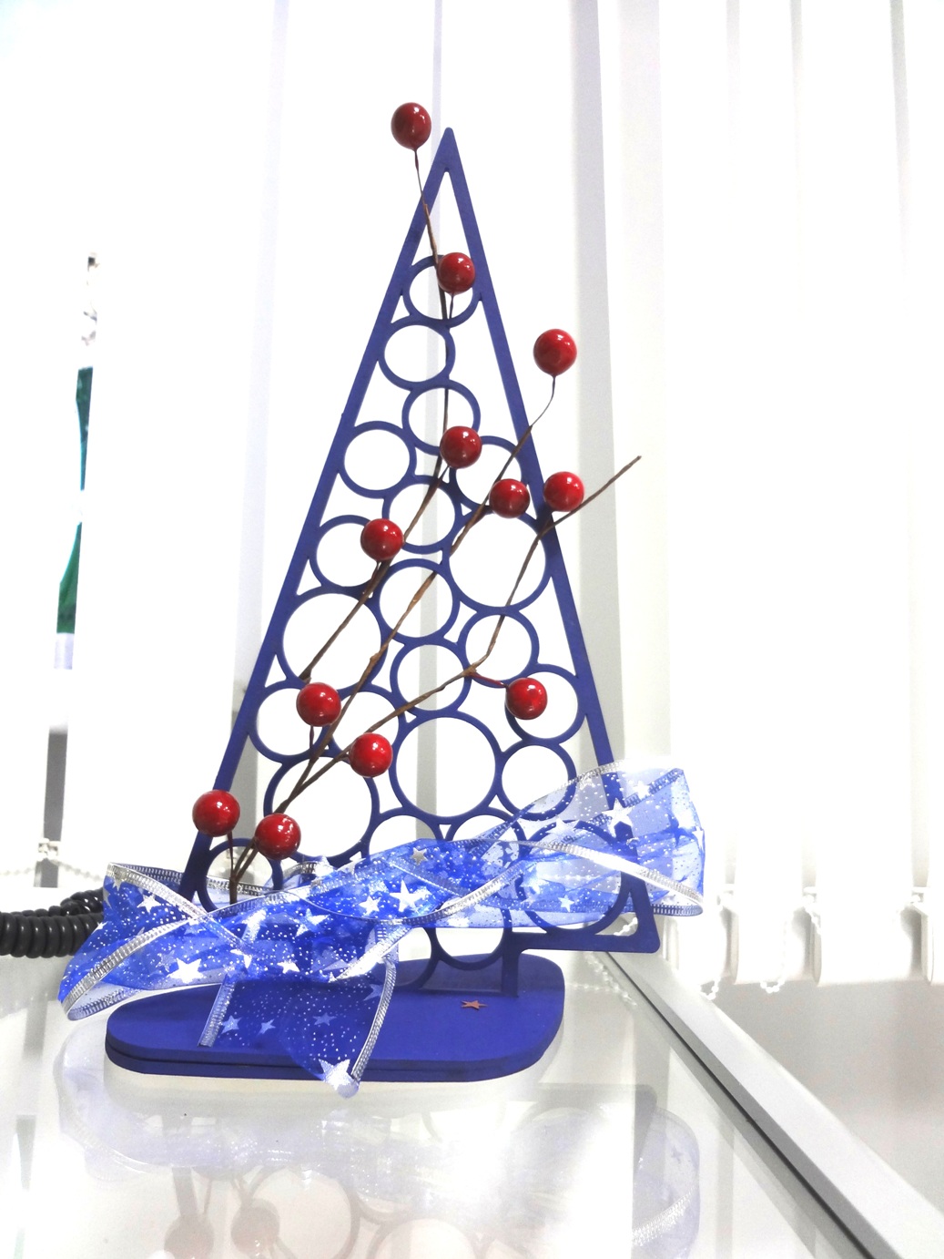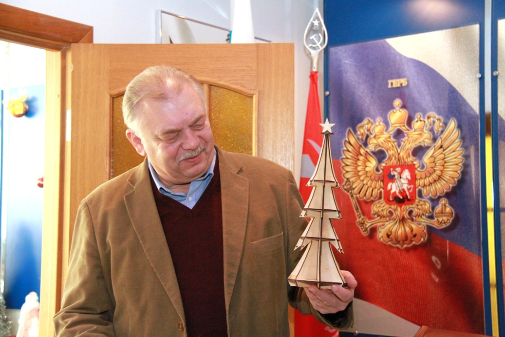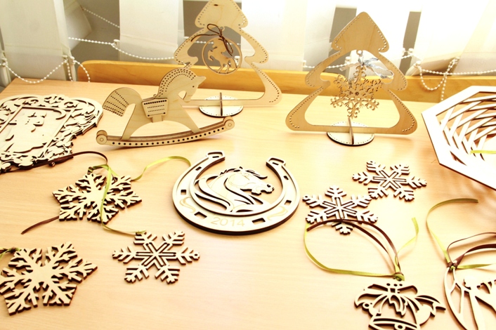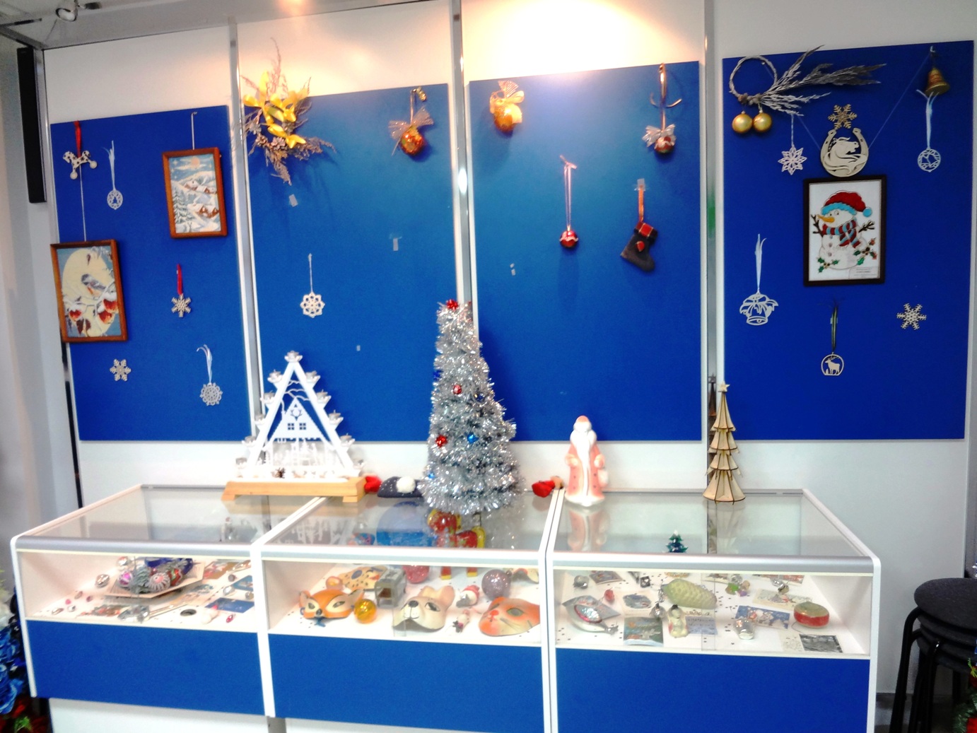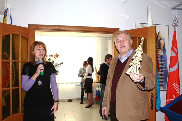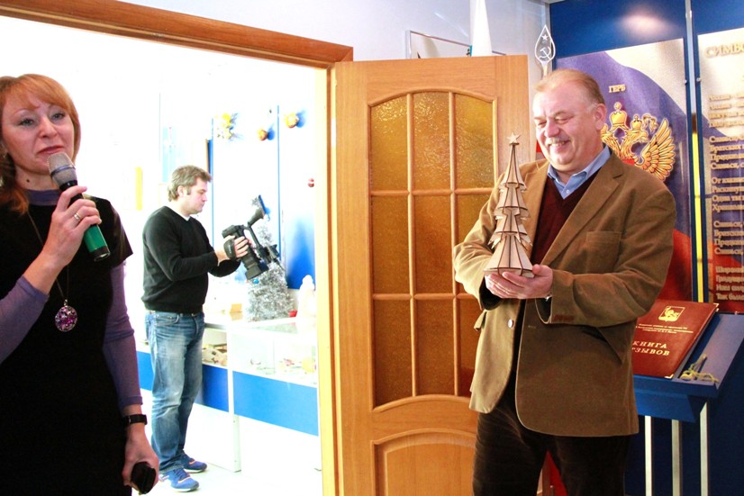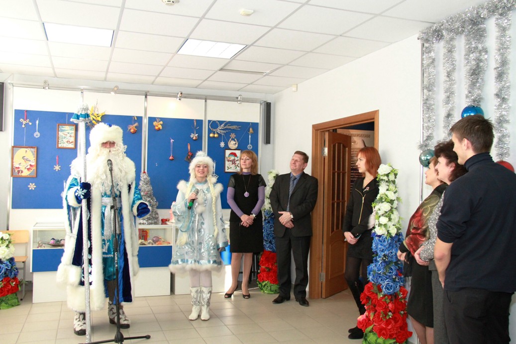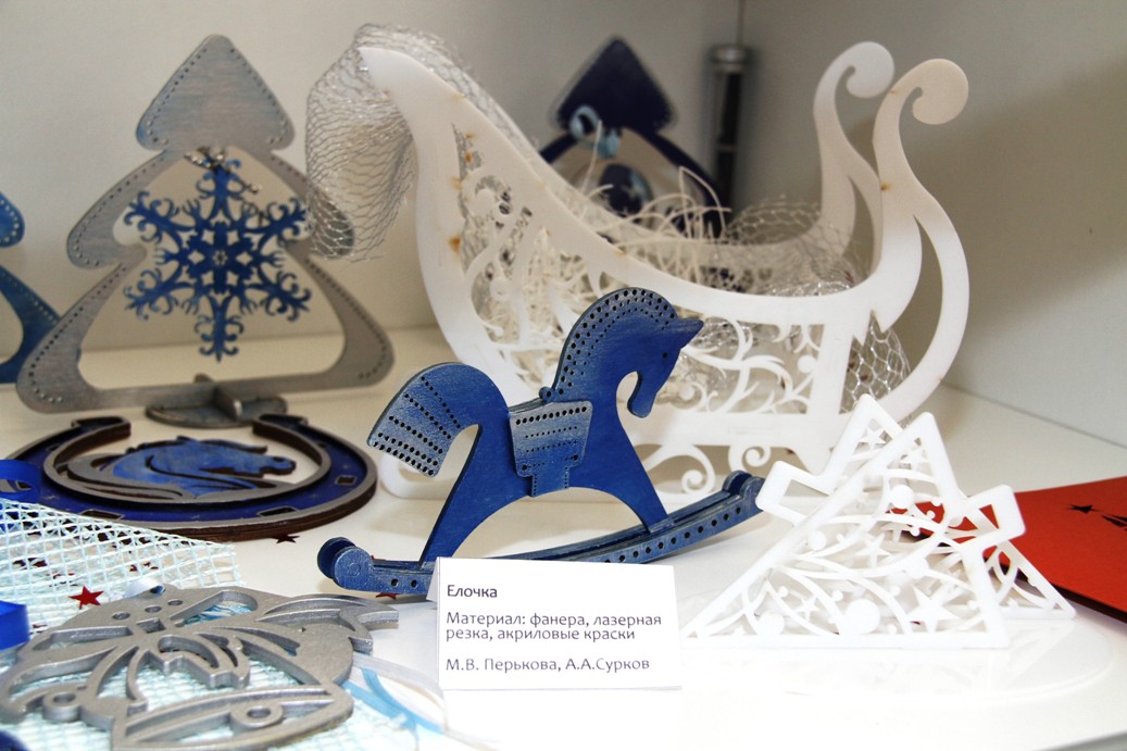 Активное участие в формировании выставки приняли кафедра архитектуры (зав. каф. к.а., проф. М.В. Перькова, изготовившая символы Нового года: снежинки, елочки, подковы, лошадей. Дизайнерская студия Екатерины Леткеманн предоставили цветочные елки – эдакий отсыл к лету, которого с нетерпением ждут студеной зимой. А молодежный инновационный центр «Метаморфозы» подарил фанерную ёлочку, которая и была вручена Ю.И. Селиверстову.