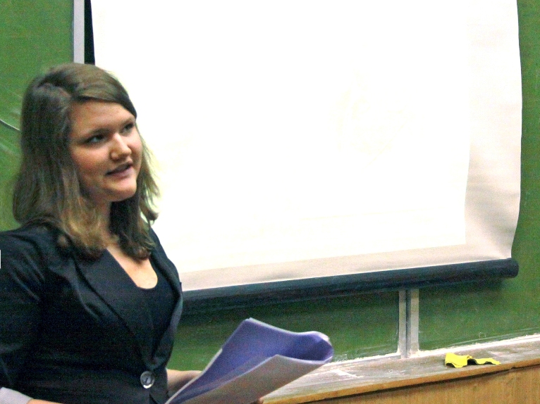 С более подробным докладом-презентацией выступила второкурсница кафедры архитектуры Ольга Рощупкина (АР-21). Она привела интересные факты биографии, остановилась на детских и студенческих годах Владимира Шухова. Высокая образованность и оригинальность мышления проявилась еще в школьные годы. Но наряду с этими качествами личности родители и педагоги формировали высокие нравственные качества: скромность, уважение к предшественникам. Как будущий архитектор, Ольга остановилась на уникальных сводчатых конструкциях архитектурных шедевров В.Г. Шухова. В настоящее время наблюдается возвращение интереса к идеям ученого – они позволяют реализовывать сложные проекты. При этом здания будут отличаться высокой прочностью и долговечностью.