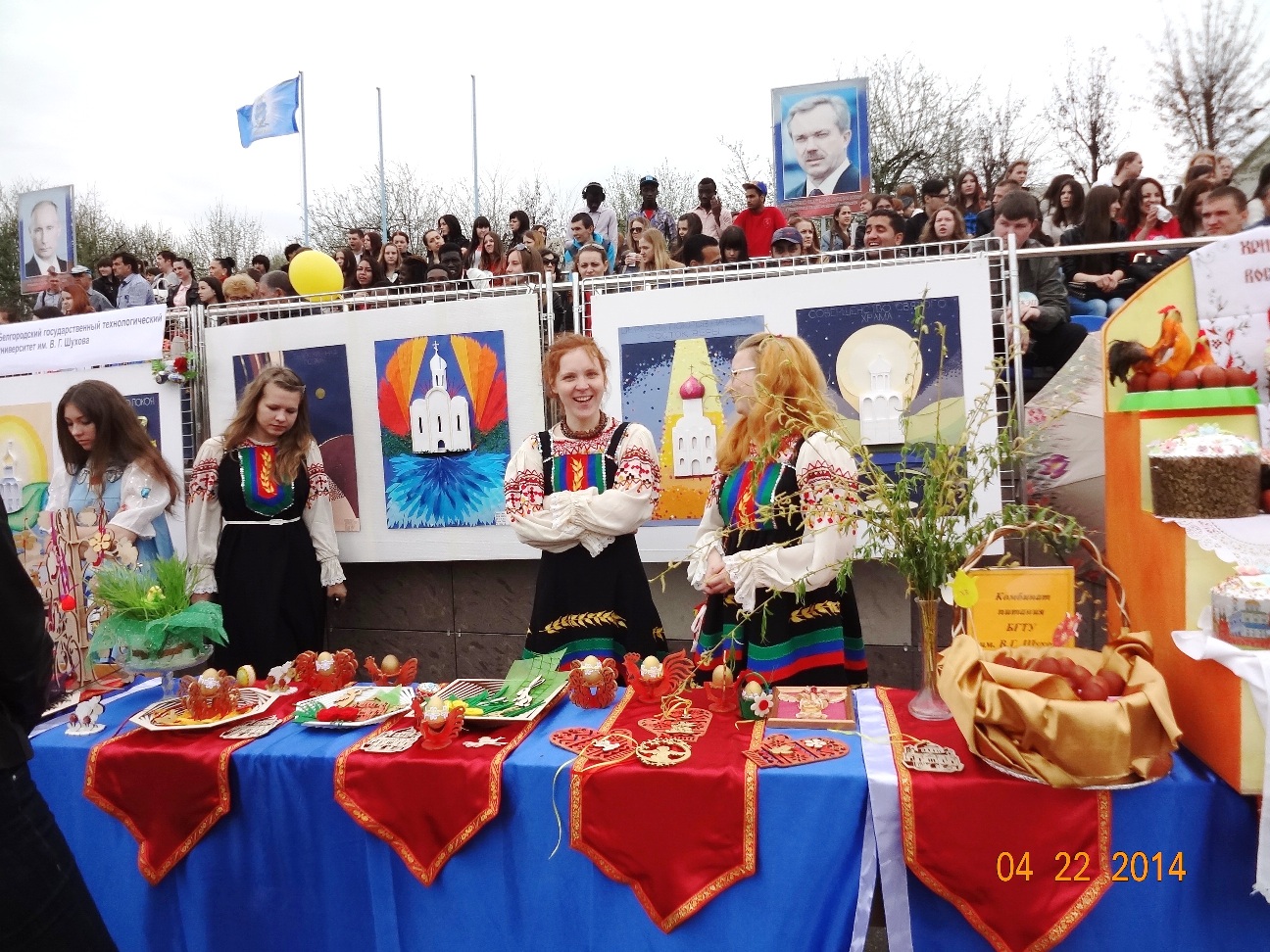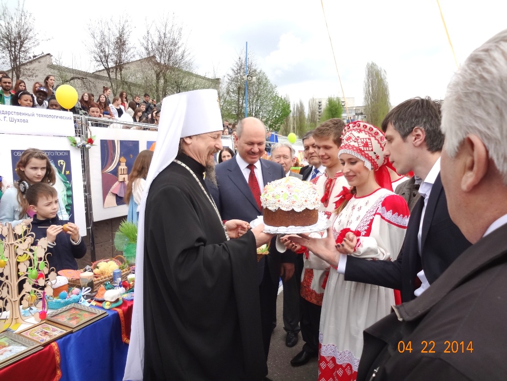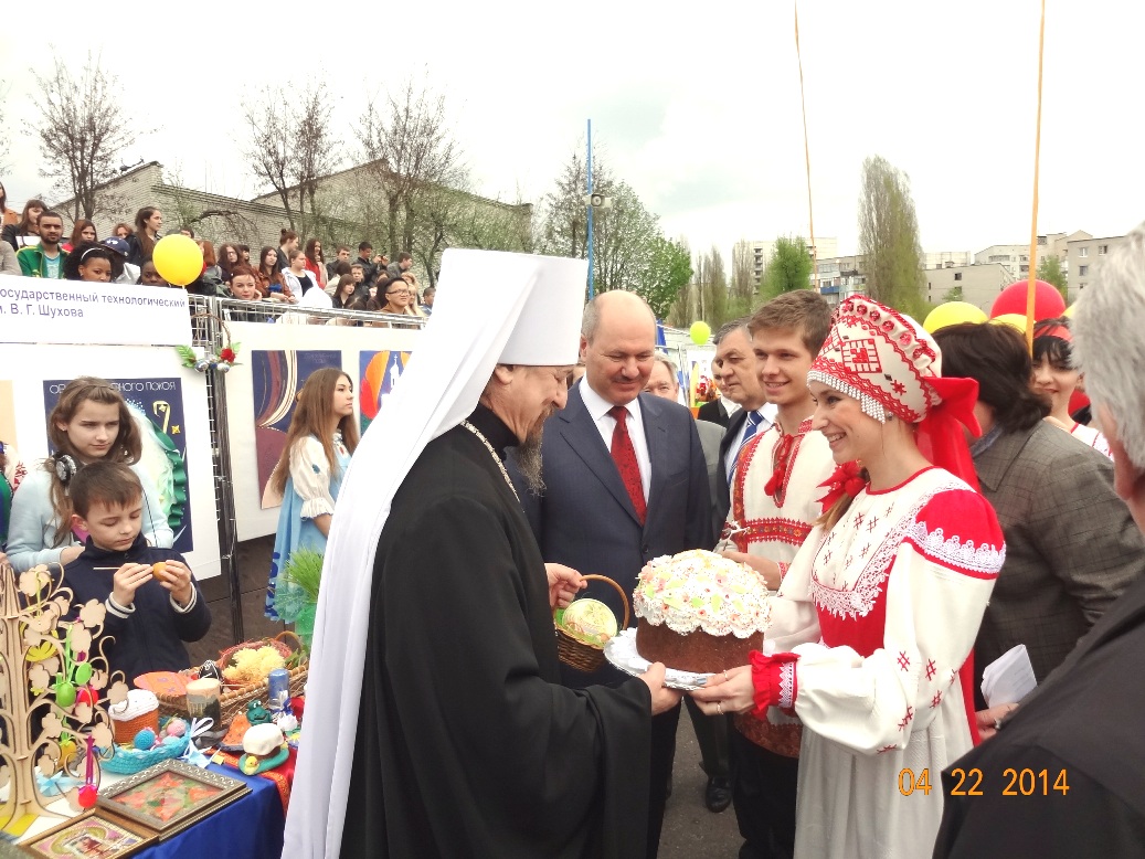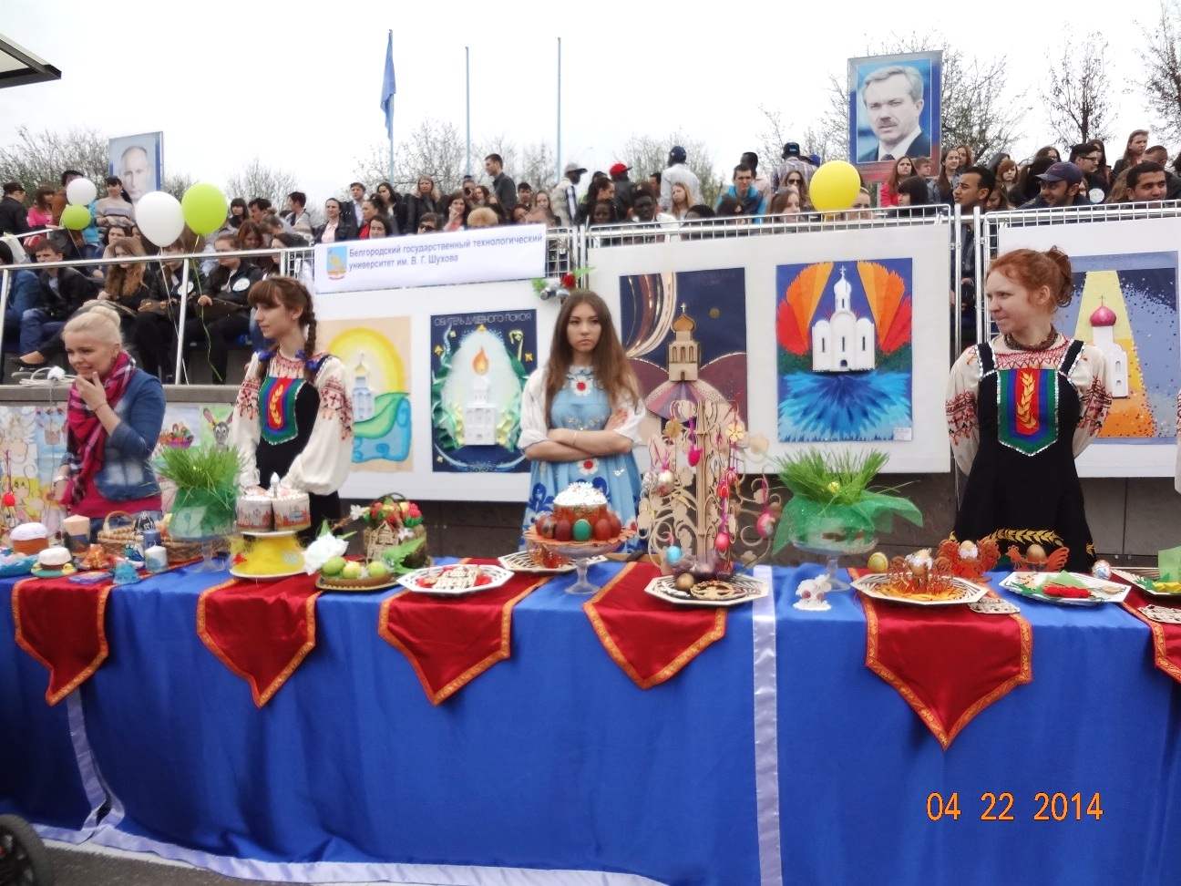 22 апреля в БелЮИ МВД состоялась областная Студенческая Пасха, в которой приняли активное участие и студенты технолога. С 2003 г. Празднование Пасхи проводилось в БГТУ им. В.Г Шухова, выступившего инициатором возрождения православной традиции. Областной студенческий праздник «Святая Пасха на Белогорье» проводится в двенадцатый раз по благословлению митрополита Белгородского и Старооскольского Иоанна. В мероприятии, приуроченном к Пасхальной седмице, участвовали студенты всех белгородских вузов. В БГТУ имени Шухова праздник отметили с традиционным размахом.