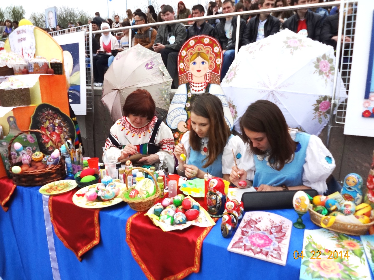 Художница Елена Новикова тесно сотрудничает с МВК университета. Вместе со студентами кафедры архитектуры для всех желающих она провела мастер-класс по росписи пасхальных сувениров и поделок.