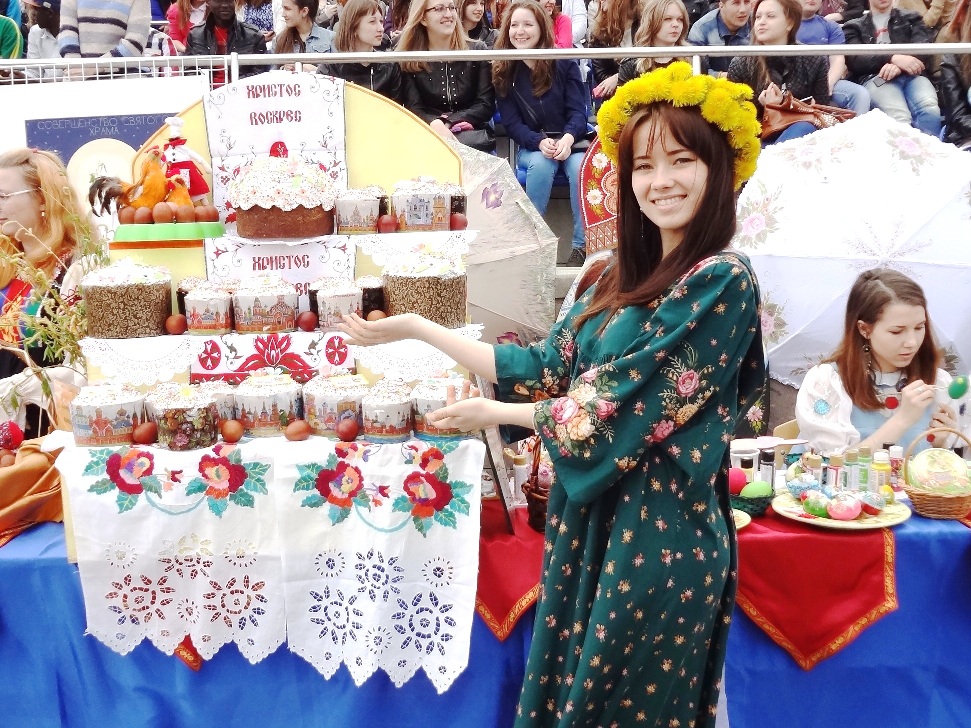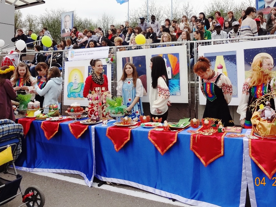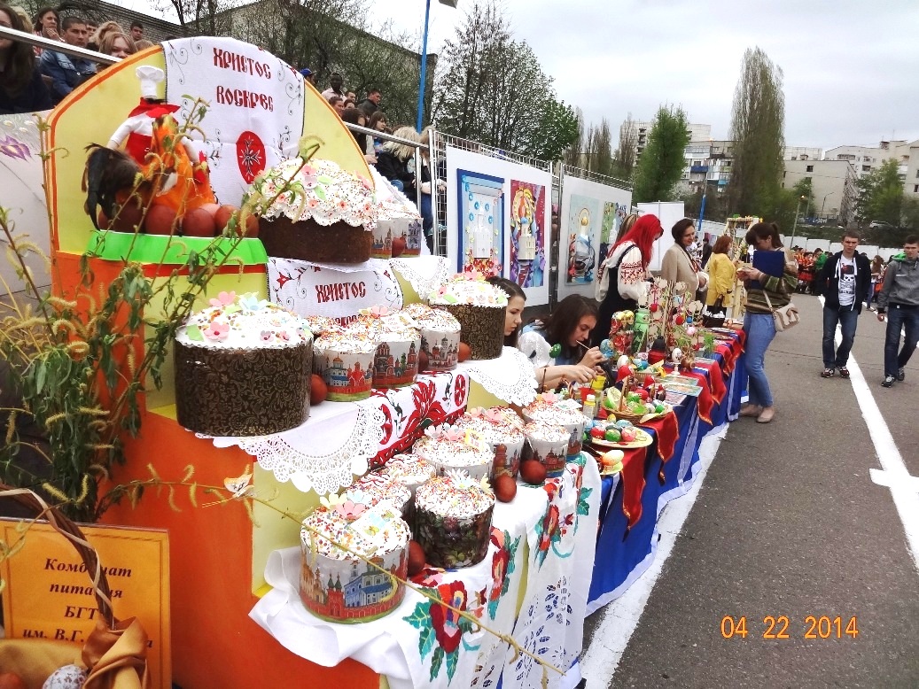 Непременным атрибутом студенческой Пасхи являются куличи. По традиции их готовит комбинат питания БГТУ им. Шухова. Куличи, испечённые в «технологе», в этом году удались на славу. Целая пасхальная горка угощений радовала глаз. А затем все желающие могли угоститься пасхальными куличами.