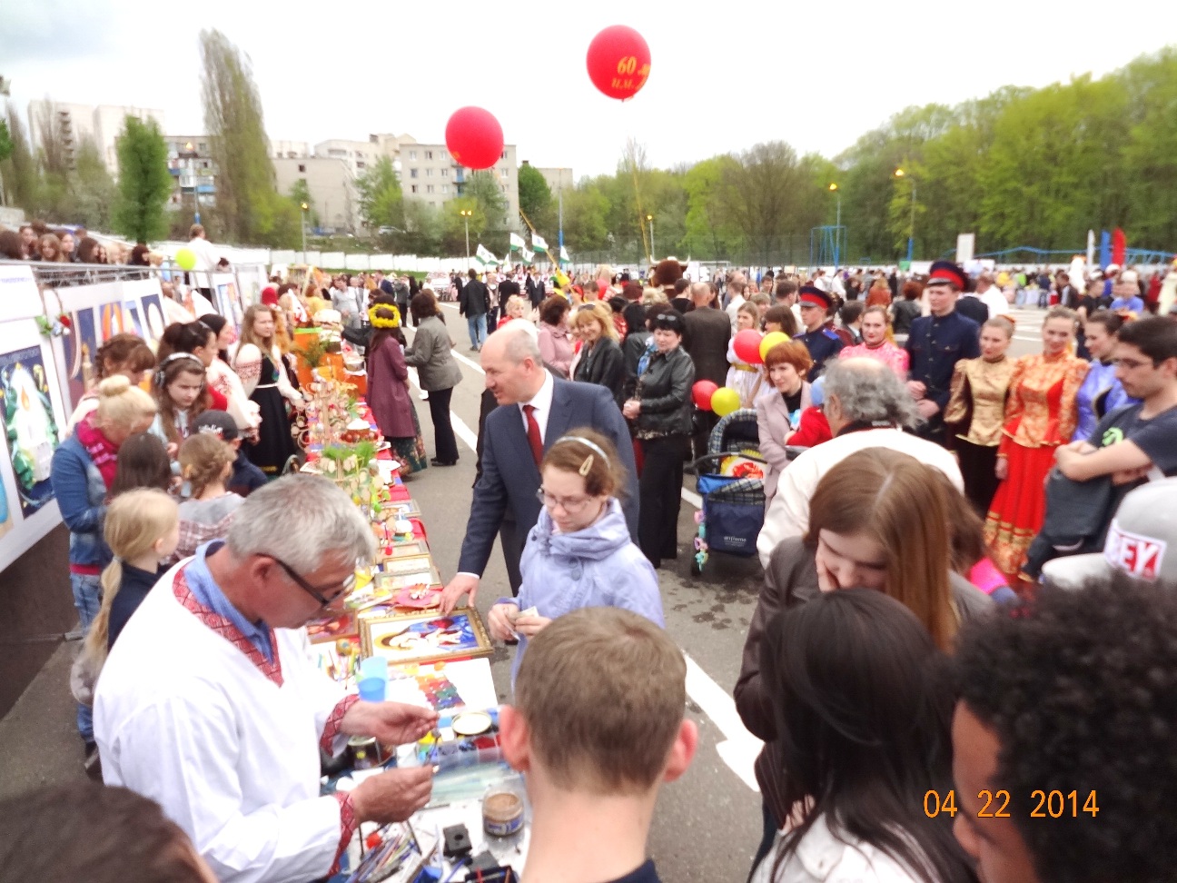 Праздничные мероприятия начались с открытия выставки творческих работ, представленных ВУЗами и ССУЗами Белгородской области. Сотрудники Музейно-выставочного комплекса постарались на славу.По общему мнению, шуховская экспозиция - стала одной из самых красивых. Гости праздника увидели празднично накрытые столы на которых красовались нарисованные, вышитые и изготовленные из бисера образы святых апостолов, портрет святителя Белгородского Иоасафа, пейзажи, натюрморты, изделия из макраме.Уникальная техника живописи на бересте, матрешки, расписные шкатулки и многочисленные поделки вызвали неподдельный интерес участников и гостей праздника.