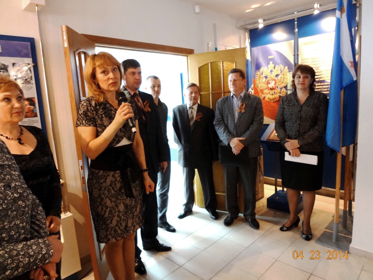 Присутствовавшие на открытии выставки заместитель проректора по культурно-воспитательной работе С.А. Кеменов, председатель совета ветеранов университета, к.т.н., доц. А.В. Черкасов,  к.э.н., профессор А.В. Одарченко обратились к студентам и гостям со словами о великом подвиге женщины на войне, которая  вошла в историю нашей страны как Великая Отечественная. С ее началом сотни тысяч женщин устремились в армию, не желая  отставать  от мужчин, чувствуя, что способны наравне с ними вынести все тяготы воинской службы, другие стали тружениками тыла, а главное - утверждая за собой право на защиту Отечества.