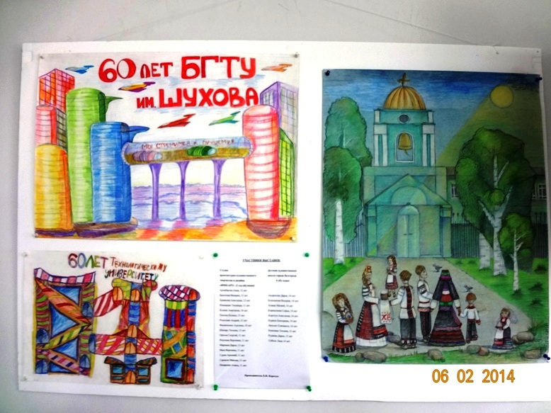 2 июня в Музейно-выставочном комплексе БГТУ им. В.Г. Шухова  в  честь Дня защиты детей открылась выставка детского творчества «Калейдоскоп», подготовленная руководителями детской студии архитектурно-художественного творчества и дизайна «ИМП-арт». Эта выставка, как и многие другие, приурочена к 60-летнему юбилею университета. Не случайно в центральной части зала размещены работы студийцев, выполненные в форме праздничной открытки, посвященные 60-летию БГТУ им. В.Г. Шухова.