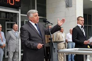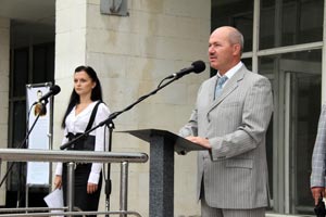 Митинг открыл ректор университета, д.э.н., профессор С.Н. Глаголев. Сергей Николаевич подчеркнул, что для вуза Владимир Григорьевич Шухов был и остаётся символом инженерного гения и примером служения своему делу.