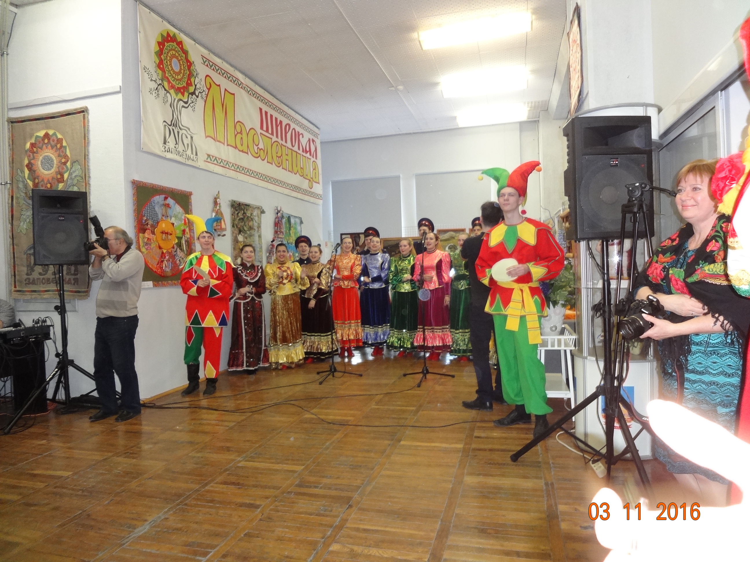 Преподаватели, студенты и гости побывали на открытии выставки "Широкая Масленица", где смогли познакомиться с работами члена Союза художников РФ Кудрявцевой Маргариты Петровны, работающей в технике лоскутной живописи, народных мастеров Белогорья Татьяной Федоровной Бредихиной,ее авторские куклы восхищают и радуют. Елена Евгеньевна Демина работает в технике валяния, сумки и картины, созданные ею, подкупают красочностью и мастерством. Лудцева Наталья Арнольдовна и Пасечник Светлана Ивановна удивляют красивыми панно из кожи. Не отстают от мастеров и шуховцы. В технике печворка представлена авторская работа Ольги Анатольевны Арчибасовой, директора центра по связям с общественностью. Выполненное ею покрывало и подушки из лоскутов - прекрасны. А еще были хороводы, песни, и конечно. угощение блинами.