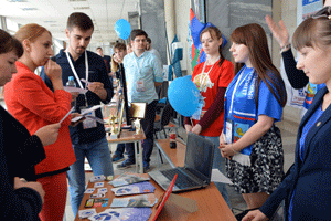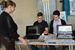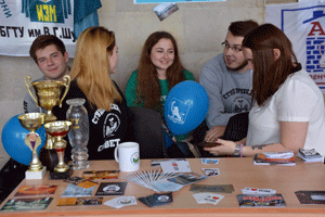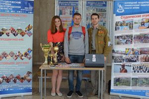 Большой интерес вызвала интерактивная выставка, оформленная в холле второго этажа аудиторного корпуса. Здесь расположились представители студенческих объединений, наиболее активно работающих в вузе.