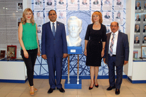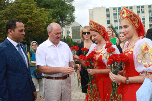 По традиции гости возложили цветы к памятнику В.Г. Шухова. Ректор технологического университета, д.э.н., профессор С.Н. Глаголев, радушно приветствуя гостей, обратил их внимание на скульптурные композиции, украшающие территорию вуза. Это результат работы скульпторов из арабских стран, участвовавших в архитектурном пленере, который проводился  осенью прошлого года в нашем университете.
