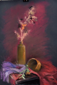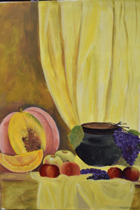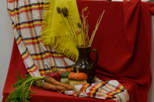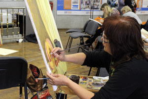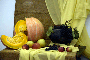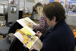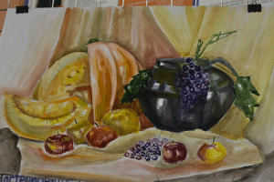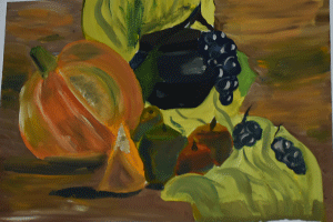 По завершении работы на стендах красовались порядка шестидесяти живописных и графических работ, на которых желтые, красные и оранжевые краски осени превращались в яркие изображения ее плодов: тыкв, яблок, калины...