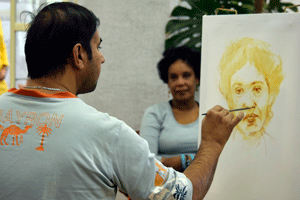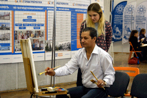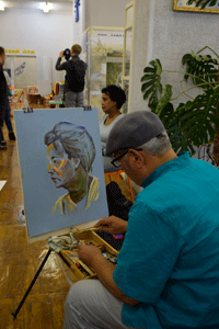 Одним из интересных экспромтов этого дня стало написание портрета художницы Зейнаб Махмур Хуссейн. Увлек своим примером Махди Али Слих Махди (Багдадский университет, Ирак) У него потрясающая классическая манера письма. Вначале взрослые и маленькие коллеги подходили просто посмотреть, а потом захотели присоединяться. Так что портретов получилось достаточно много. И тут ярко проявилась индивидуальность художников. Кто-то увидел мягкую лиричность и женское обаяние, а кто-то целеустремленную, достаточно жесткую  деспотичную личность...