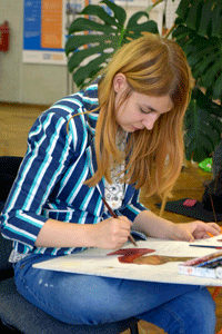 Своей подружке вторит Полина Петрова (школьница, ИМП-АРТ): «У каждого своя манера рисования, у каждого своя техника. Все это было очень интересно, но особенно запомнилась Халла. «Подсмотрела» у нее некоторые интересные приемы».