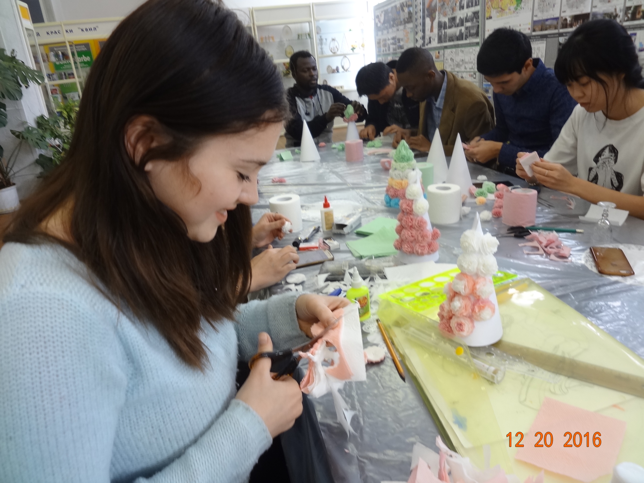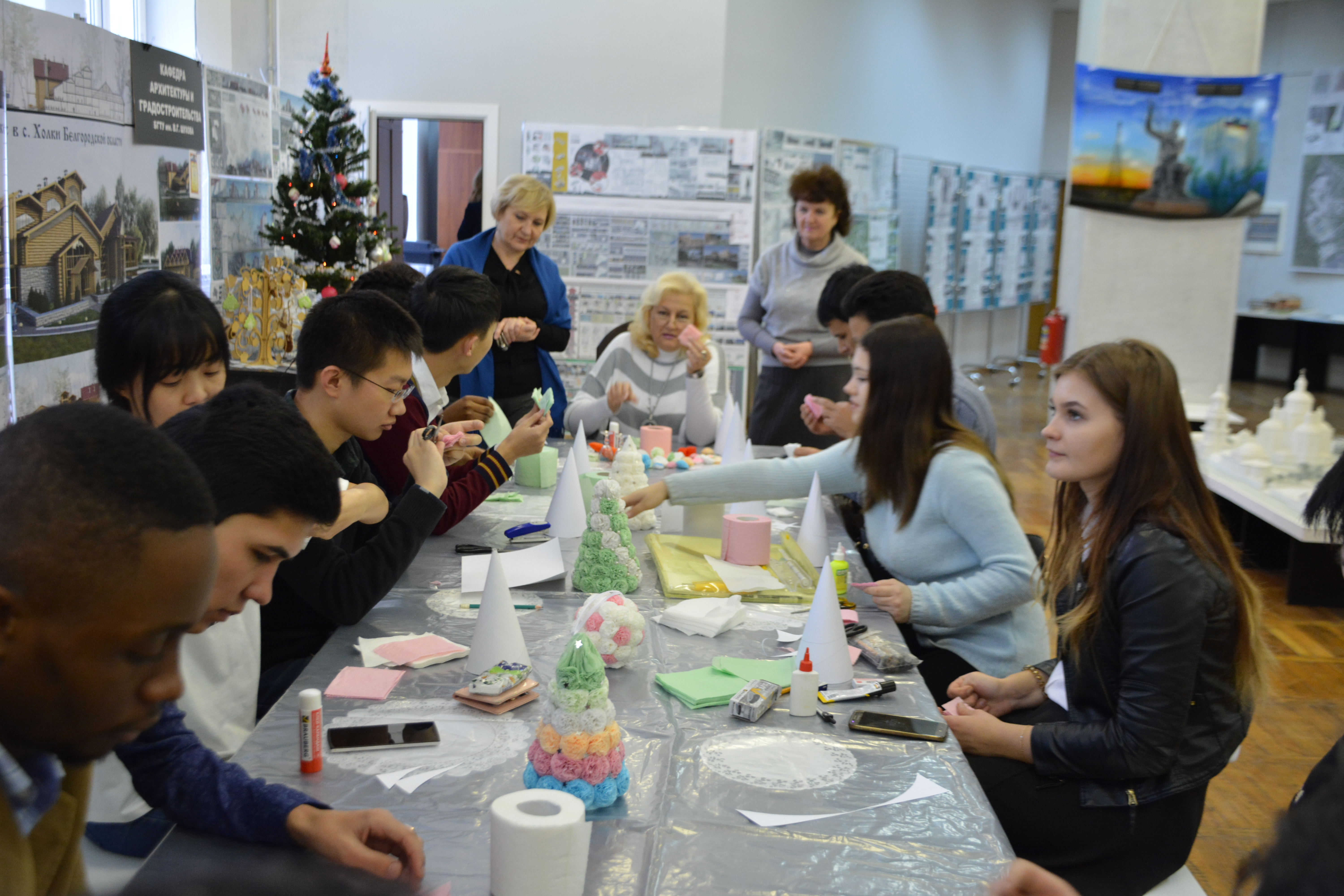 Возможно, что фабричные игрушки красивее, чем handmade , но разве могут сравниться с ними по энергетике и теплоте украшения, сделанные своими руками. Мастер-класс по бумагопластике состоялся сегодня в МВК БГТУ им. В.Г. Шухова. Участниками творческой мастерской стали студенты кафедры дизайна архитектурной среды и слушатели подготовительного факультета. Мастер Елена Красовская показала,  как можно сделать оригинальную новогоднюю елочку своими руками из обыкновенных салфеток.  С работой успешно справились все, при этом, у каждого получилась оригинальная не похожая на другую, авторская елочка.
