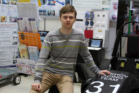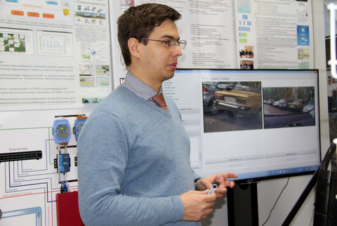 Все это можно проверить в действии. Благо объемы выставочного комплекса позволяют проводить подобные заезды. А в качестве опытного пилота выступает кандидат технических наук, старший преподаватель кафедры технической кибернетики Д.А. Юдин.