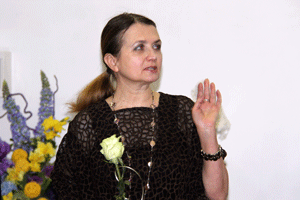 Заместитель проректора по культурно-воспитательной и социальной работе, к.т.н. Н.А. Митякина поздравила всех присутствующих с  приближающимся праздником и поблагодарила художницу за тот замечательный подарок, который та преподнесла всем шуховцам в канун 8 марта.