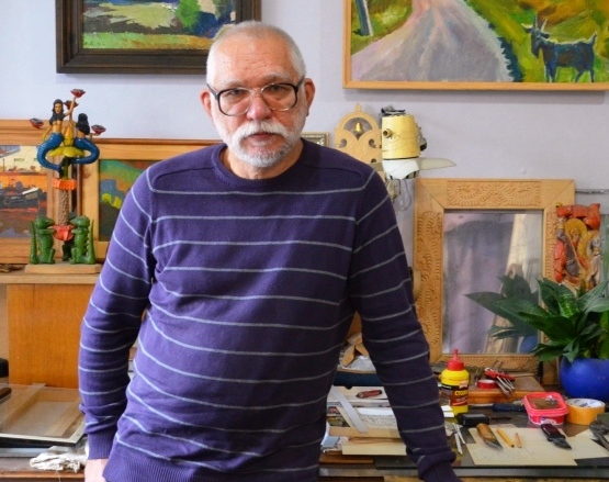 Вторая часть экспозиции представлена работами Владимира Аксёнова, давно известного как замечательный резчик по дереву. Знаменитый белгородец, график Станислав Косенков предрекал Владимиру Аксенову большое будущее и всячески его поддерживал в руководимом им молодежном объединении художников.