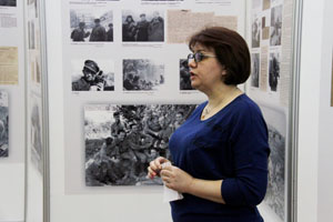 Первую экскурсию по выставке провела старший научный сотрудник Белгородского государственного историко-художественного музея-диорамы «Курская битва. Белгородское направление» Л.С. Гончарова. Лариса Семёновна рассказала о героических корреспондентах, снимавших хроники Сталинградской битвы, начиная с её первых дней и до самого конца: бомбёжки, эвакуацию мирных жителей, контрнаступление советских войск, быт населения и бойцов российской армии.
