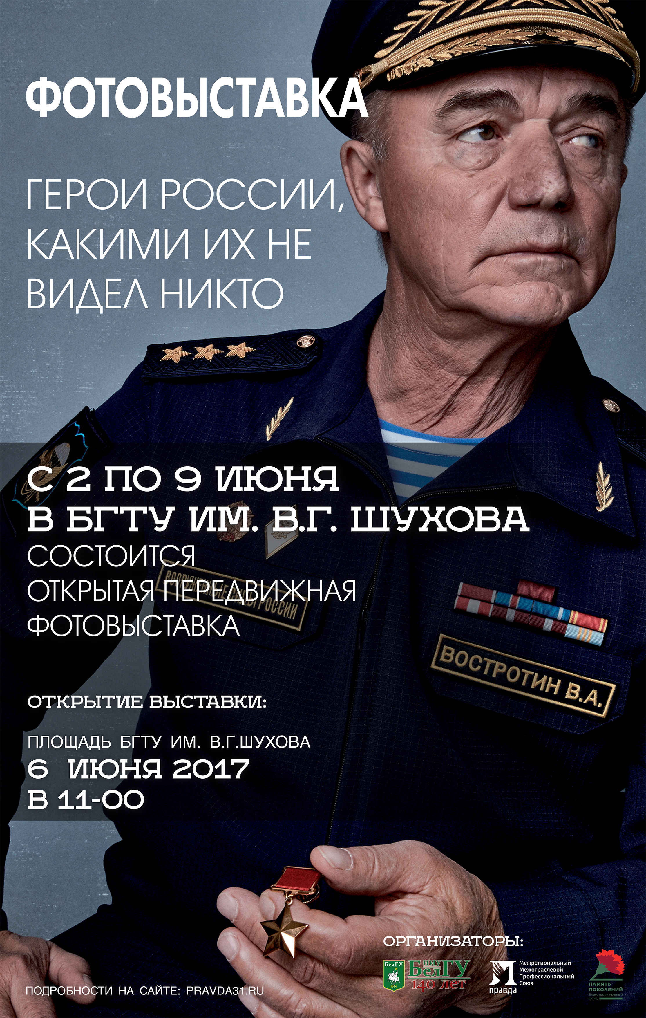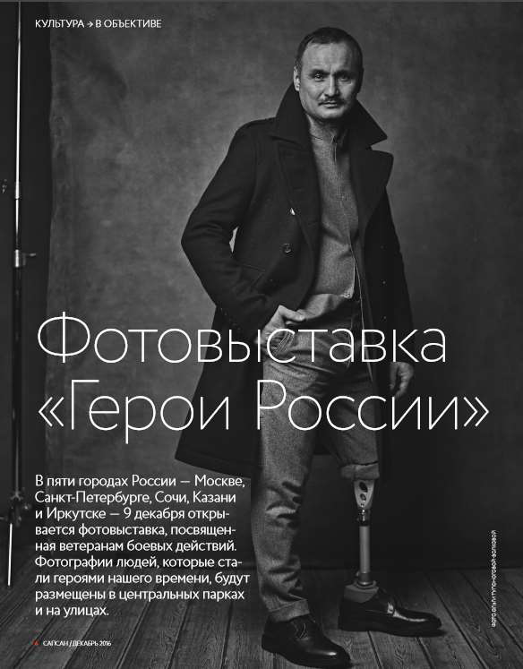 Известные фэшн-фотографы Данил Головкин, Ольга Тупоногова-Волкова и Криста Судмалис создали для выставки 34 работы, где представили свое видение Героев России – ветеранов различных войн.