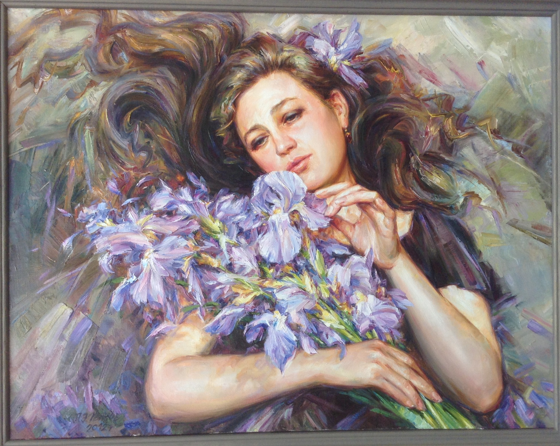 Автору одинаково хорошо удаются портреты и натюрморты. Удивляет тонкость восприятия женского образа художником, переданного в картине «Аромат ирисов».