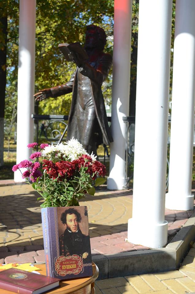 Сегодня на пушкинской аллее БГТУ им.В.Г. Шухова Пушкинская библиотека-музей пригласила белгородцев почитать стихи всенародно любимого поэта А.С. Пушкина. Студенты технологического вуза в первых рядах пришли на это мероприятие и активно приняли участие в «Громких чтениях". Прямо на фоне скульптуры, где светила русской поэзии нежно читает что-то Натали в уютной беседке, собравшиеся декламировали стихи Александра Сергеевича. Таким оригинальным образом Пушкинская библиотека-музей открыла первый день культурно-образовательной программы "Лицейская неделя", посвящённой 206-й годовщине образования Царскосельского лицея. На встречу с поэтом пришли студенты Белгородского техникума промышленности и сферы услуг, воспитанники мастерской художественного слова студенческого дворца культуры Технологического университета, сотрудники музейно-выставочного комплекса БГТУ, активисты Пушкинского клуба и просто неравнодушные к творчеству поэта.