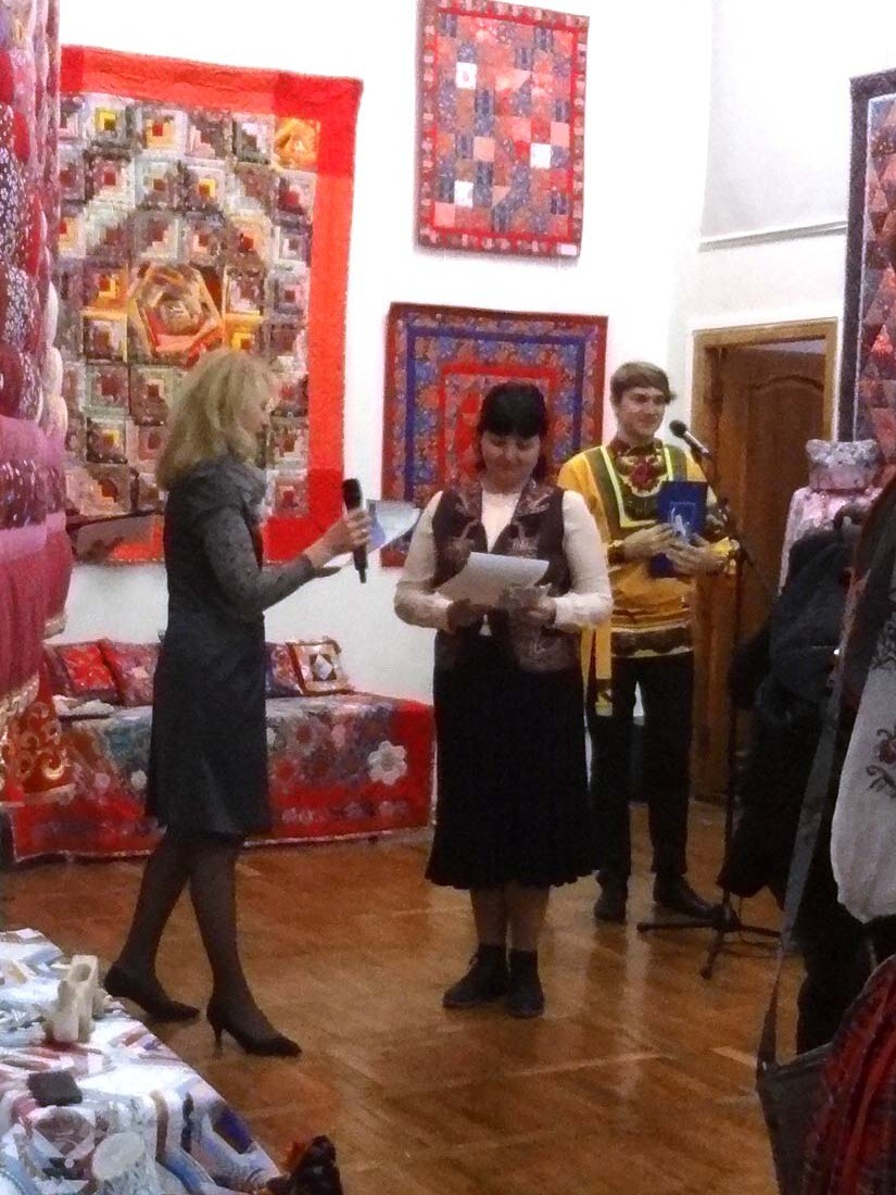 Замечательные работы рукодельниц не остались без внимания. Пришедшие на открытие выставки студенты, гости, жители близлежайших домов микрорайона с интересом рассматривали и расспрашивали рукодельниц о технике изготовления изделия, любовались замечательными лоскутными одеялами, созданными в традиционной русской манере, где главным символом является изображение семейного очага, восхищались прекрасными жилетами и сумками, созданными в русском стиле.