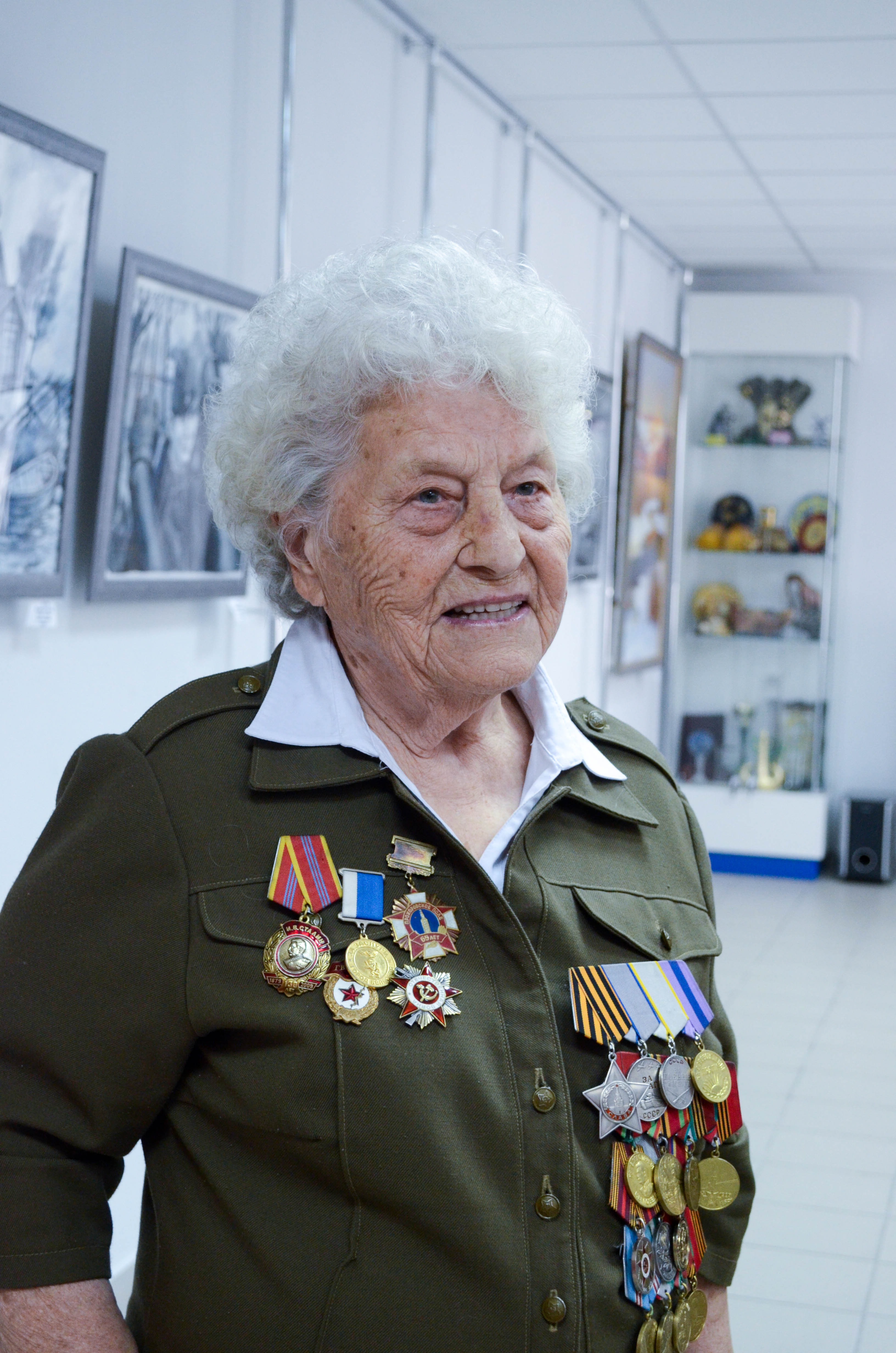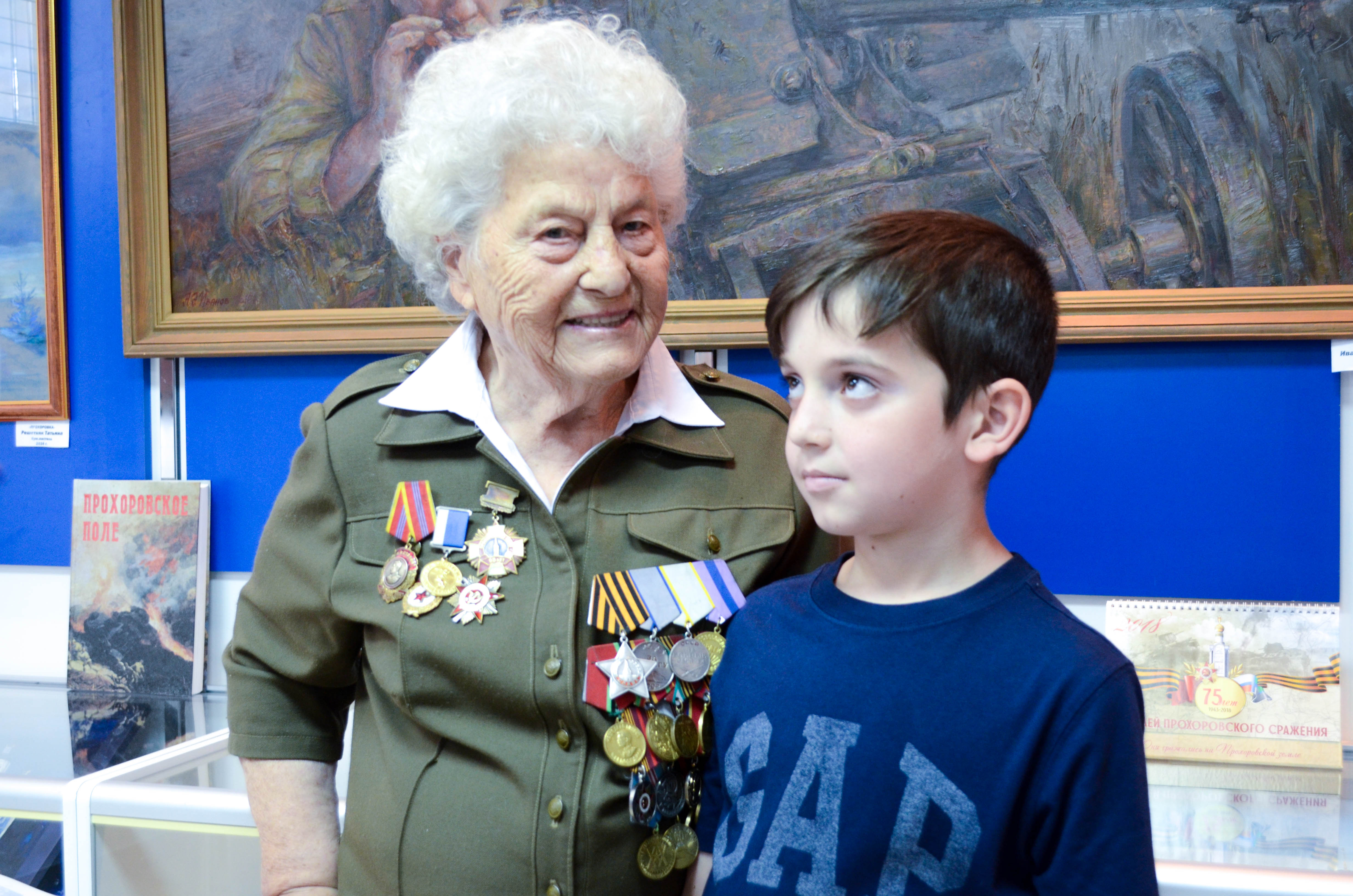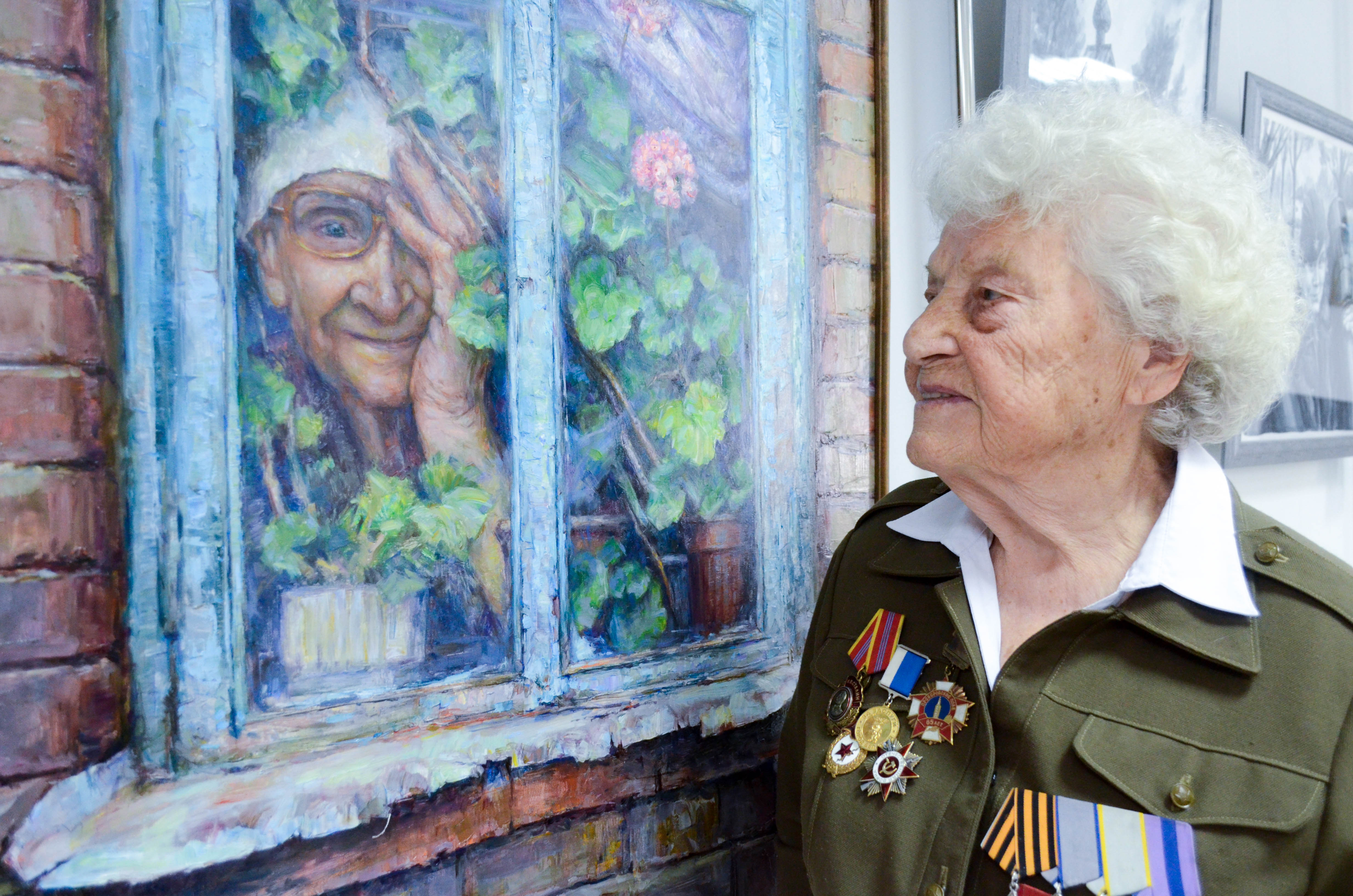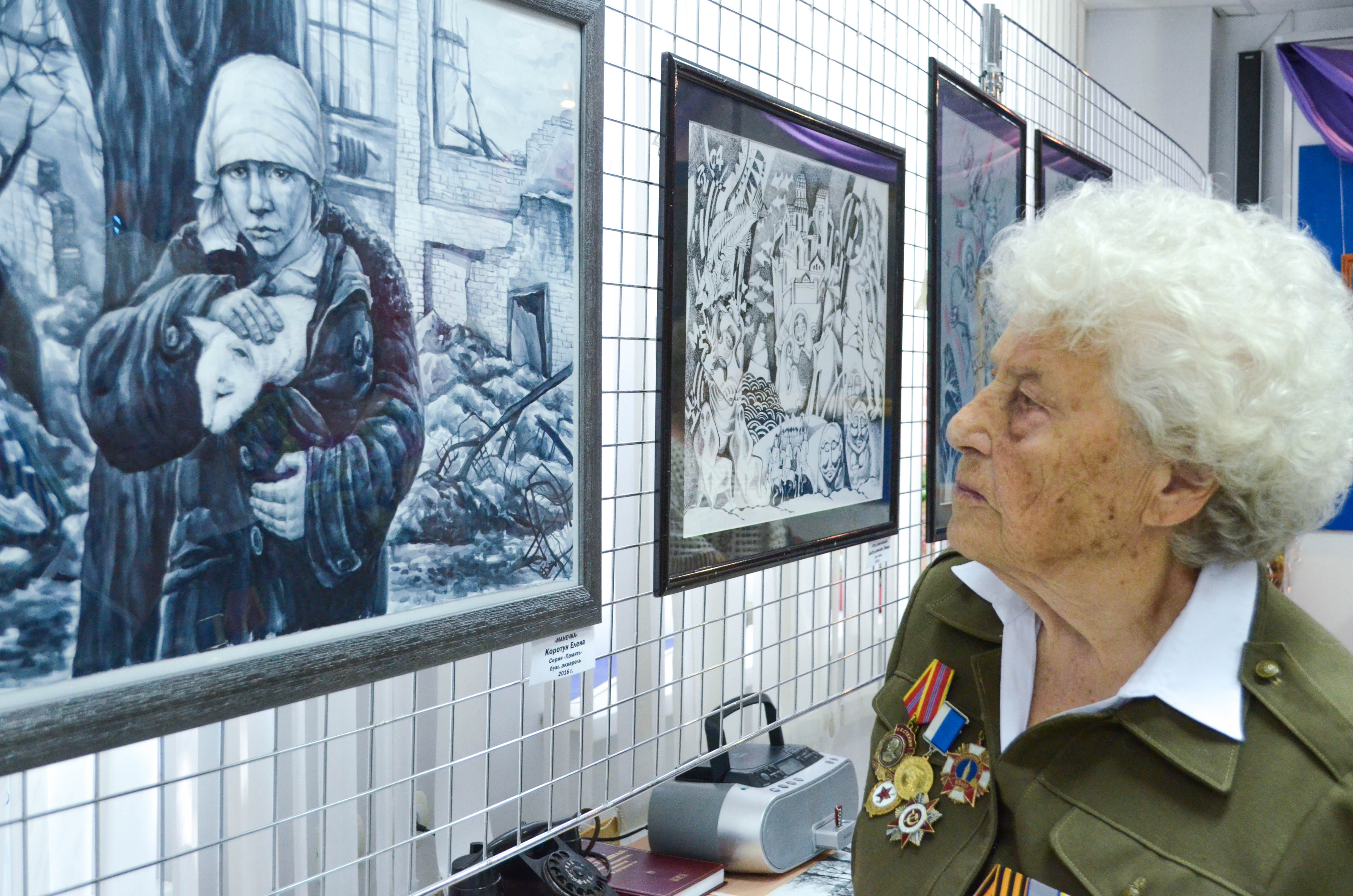 Не случайно открыть выставку в музее была приглашена самая знаменитая на Белгородчине фронтовичка – Мария Денисовна Колтакова. Ей, человеку, прошедшему всю войну от Белгорода почти до Берлина, картины поколения, которое годится Марии Денисовне во внуки, а то и правнуки, были особенно интересны, и вновь напомнили страшные страницы Великой Отечественной войны. «Железная бабушка», как назвали М.Д. Колтакову за её несгибаемую осанку, волю к жизни и стремление доказать всему миру, что ветераны не только живы, но даже могут ставить российские рекорды, поделилась с пришедшими на выставку своими воспоминаниями. На фоне художественных полотен, посвящённых военному времени, её рассказы ещё сильнее трогали, заставляя задуматься о великих людях, чьей силой, волей и огромным желанием было отвоёвано мирное небо над головой.