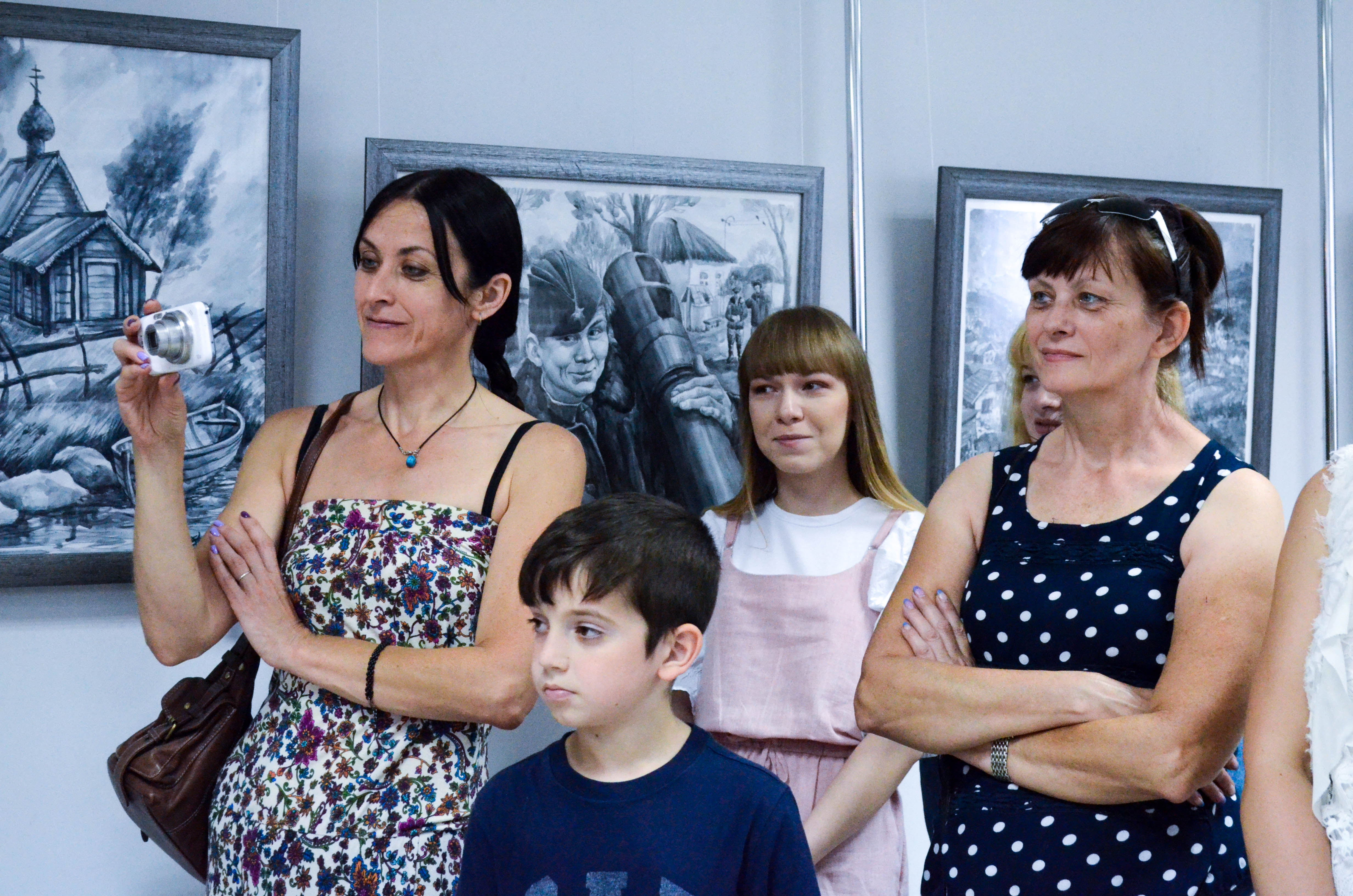Ещё одним почётным гостем выставки стал генерал-лейтенант, начальник Семипалатинского полигона, ныне председатель Белгородского регионального отделения ветеранов подразделений особого риска Юрий Коноваленко. Обращаясь к присутствующим, Юрий Владимирович, в частности, сказал, что у него при просмотре выставки сложилось мнение, что на ней больше виден именно женский взгляд. Нет грохота и скрежета железа, так свойственного мужчинам-живописцам, зато в полной мере присутствует память обо всех страницах военных лет, о том нищенском детстве, которое выпало на долю родившихся в 40-е годы, о той скорби жён и матерей, которую так точно передали художницы.