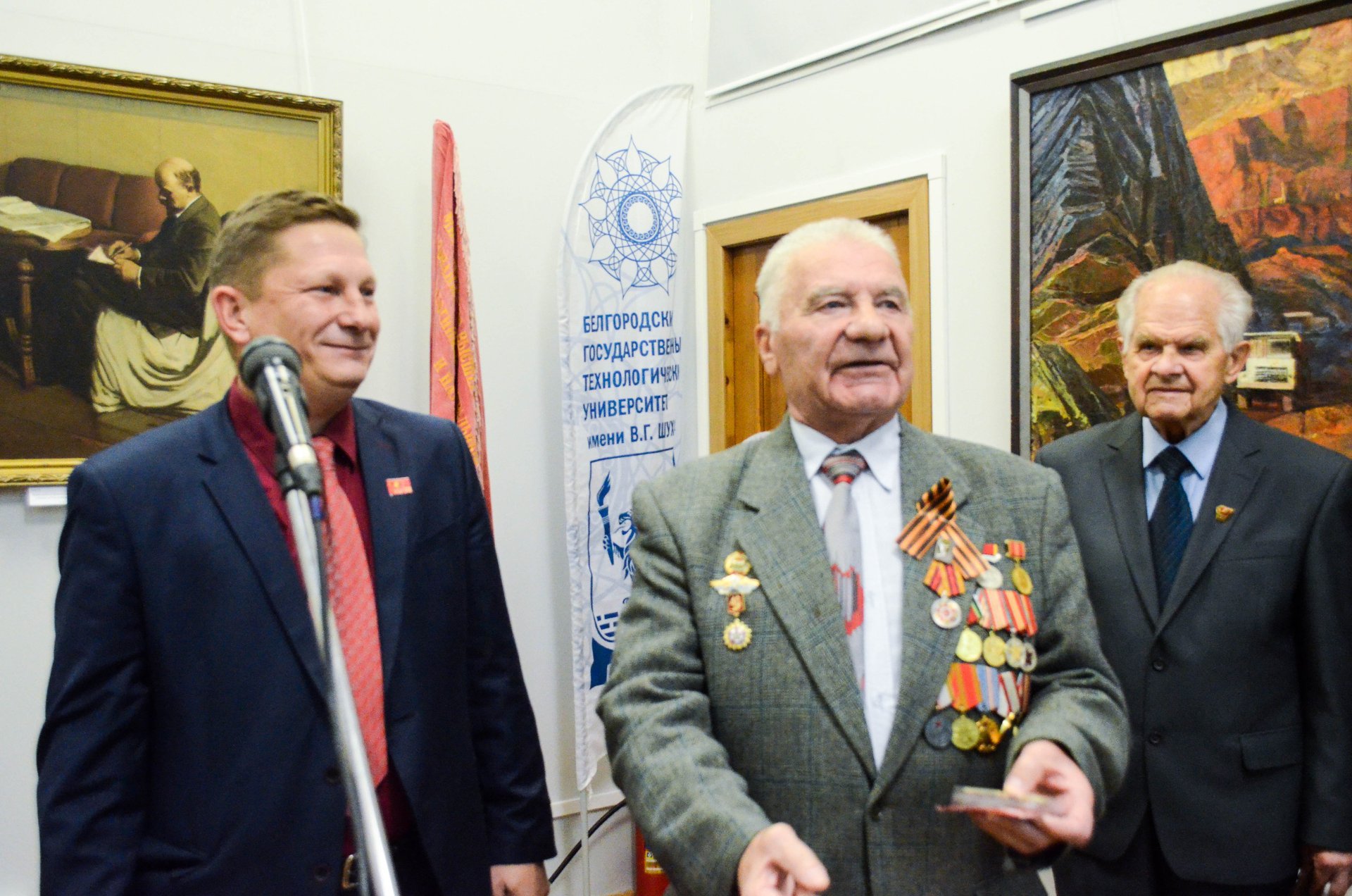 Трогательным моментом на открытии выставки стало вручение памятной юбилейной медали ветерану университета, узнику концлагеря Дыбову Анатолию Федоровичу. Честь вручения выпала председателю Совета ветеранов, кандидату технических наук, доценту Андрею Черкасову.