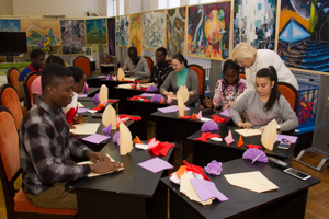 10 декабря в Музейно-выставочном комплексе началась череда предновогодних мастер-классов. Сегодня состоялся мастер-класс «Праздничные салфетки», где студенты Опорного университета могли приобрести полезный навык сервировки стола под наблюдением талантливой мастерицы Красовской Елены Павловны. В конце мероприятия участники поделились своими впечатлениями и сделали общее фото.