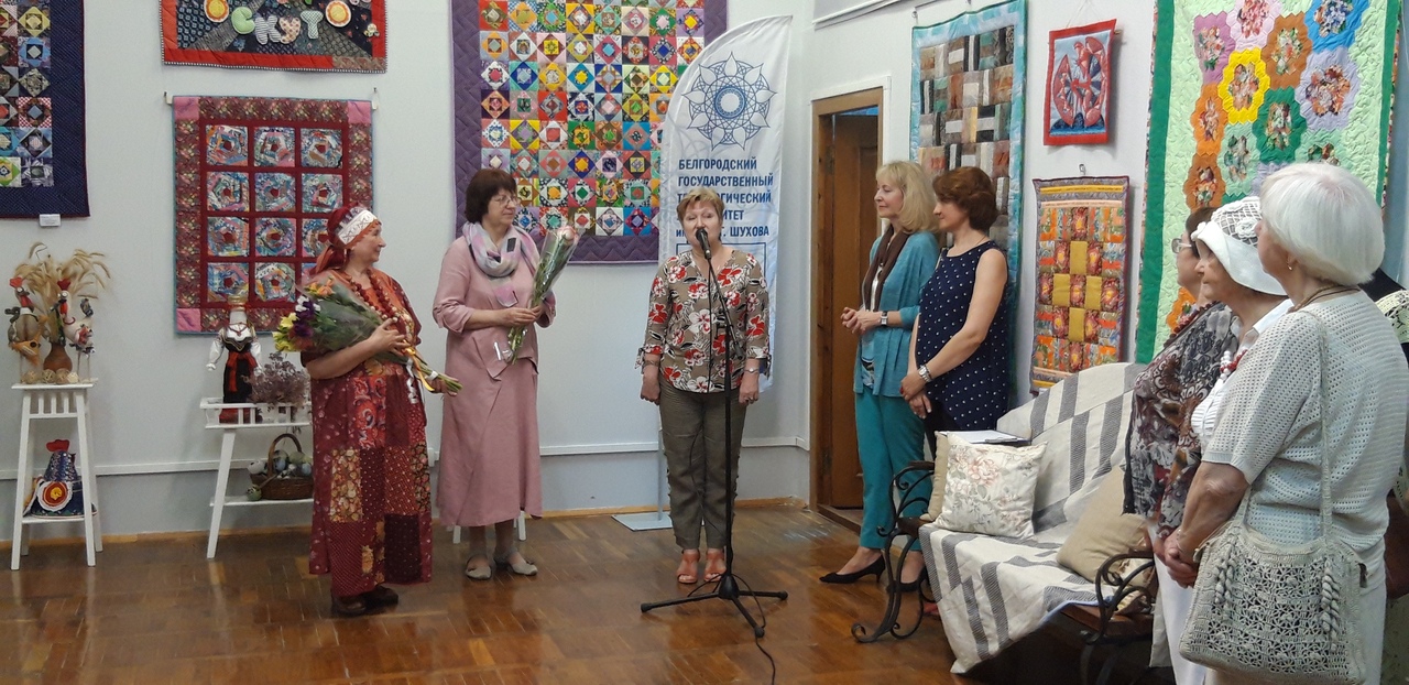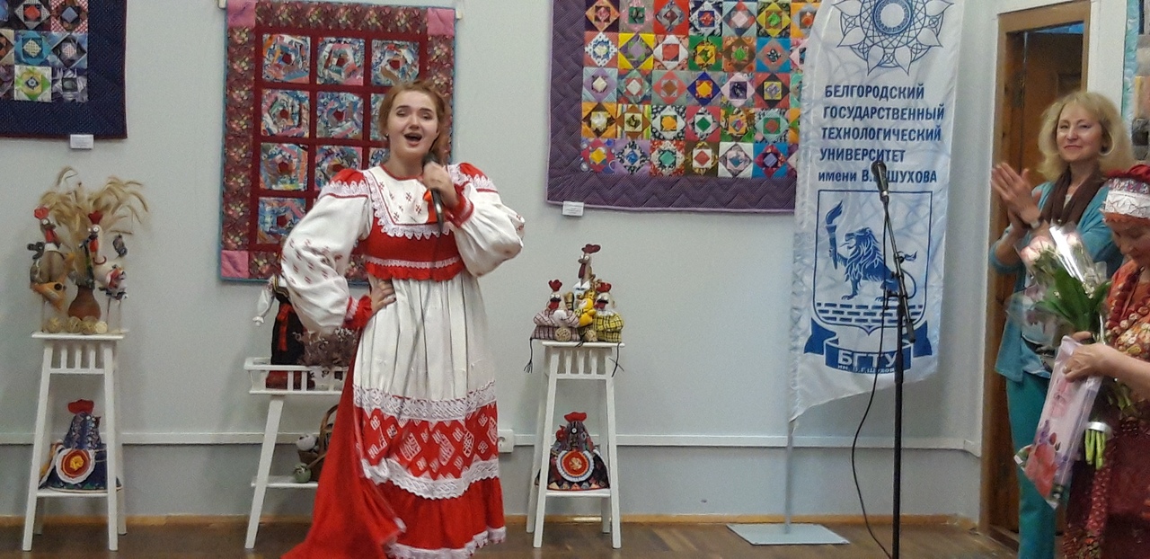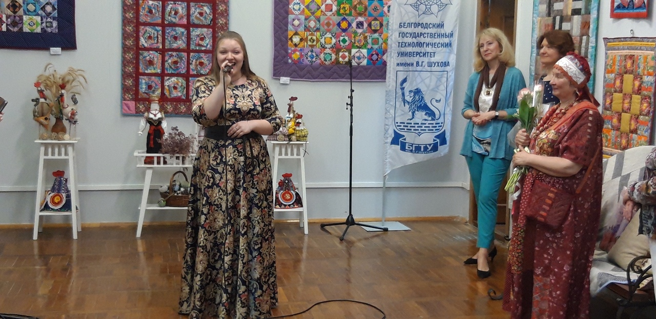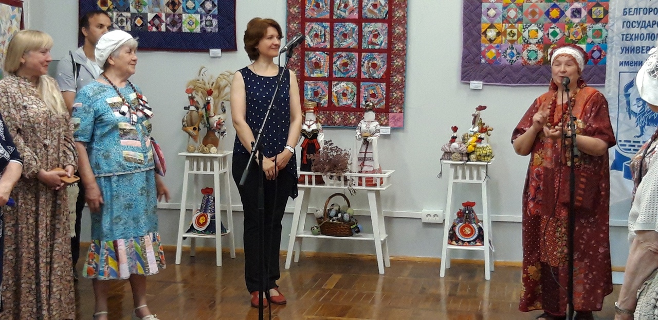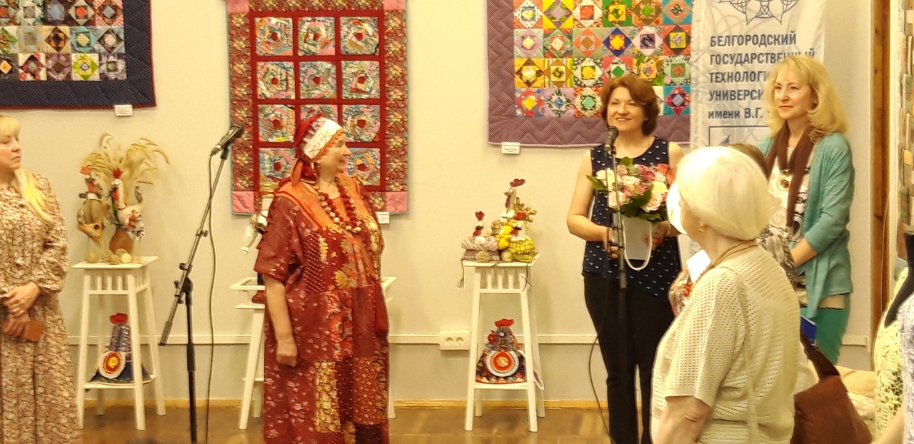 В опорном вузе России - БГТУ им. В.Г. Шухова, в "Русском доме", состоялось торжественное открытие выставки "Рукам-работа, сердцу радость!". Выставочный проект клуба, "Волшебный лоскуток " стартовал накануне открытия Межвузовского молодежного фестиваля "Русь заповедная: 5. Русский мир". Руководит клубом уже много лет народный мастер Белогорья Валентина Станкевич.
