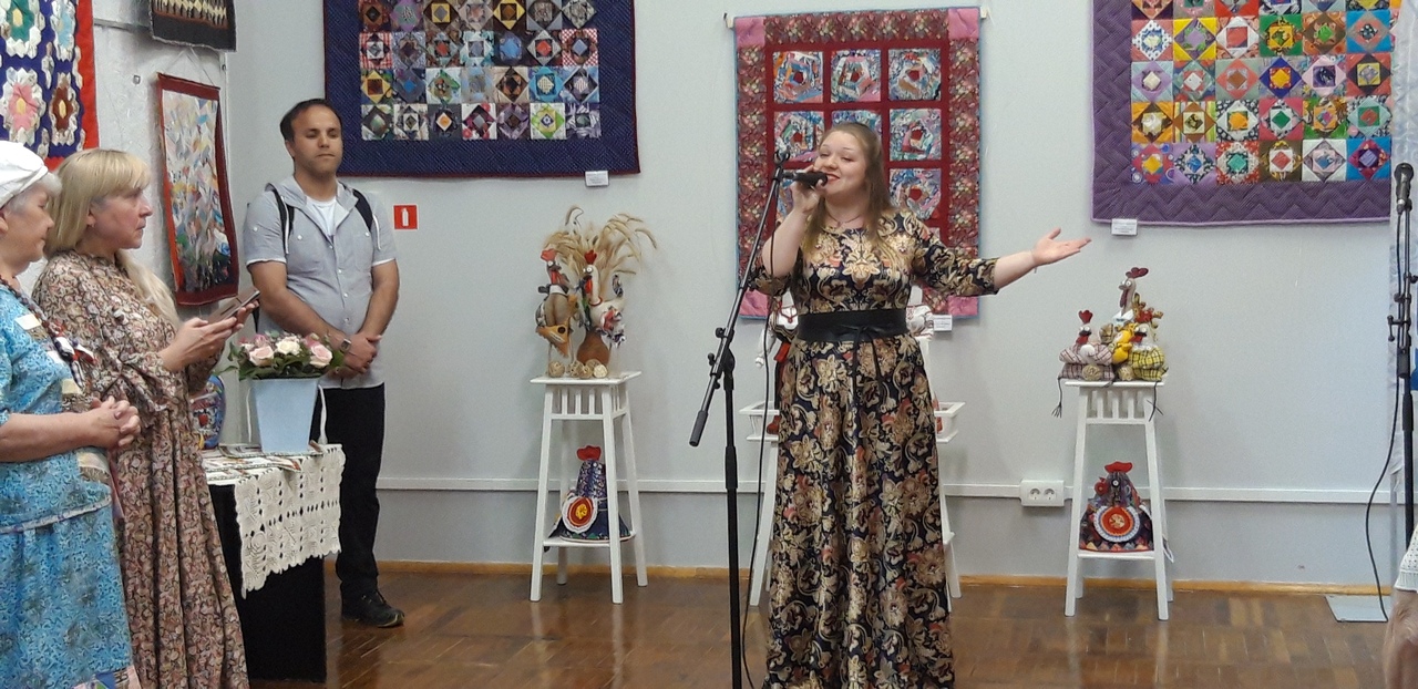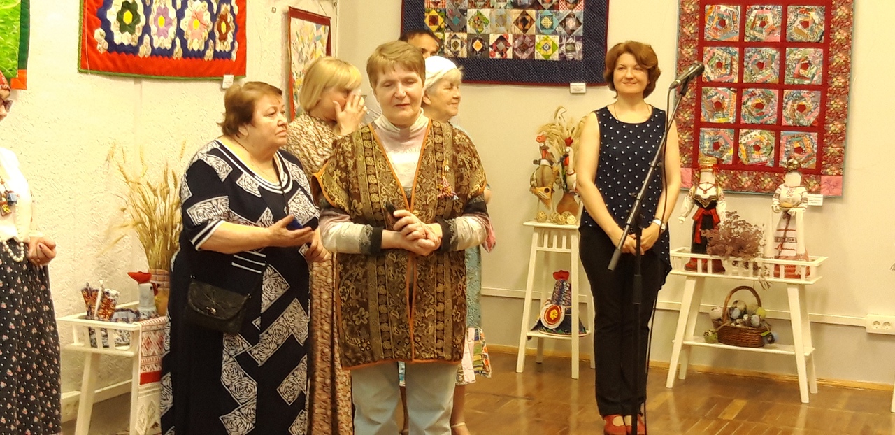 В экспозиции широко представлена лоскутная живопись члена Союза художников России Маргариты Кудрявцевой и мастеров клуба "Волшебный лоскуток", авторские куклы мастериц, декоративно-прикладное творчество. Особым украшением экспозиции стало воссоздание элементов русской избы с подлинными предметами крестьянского быта.В