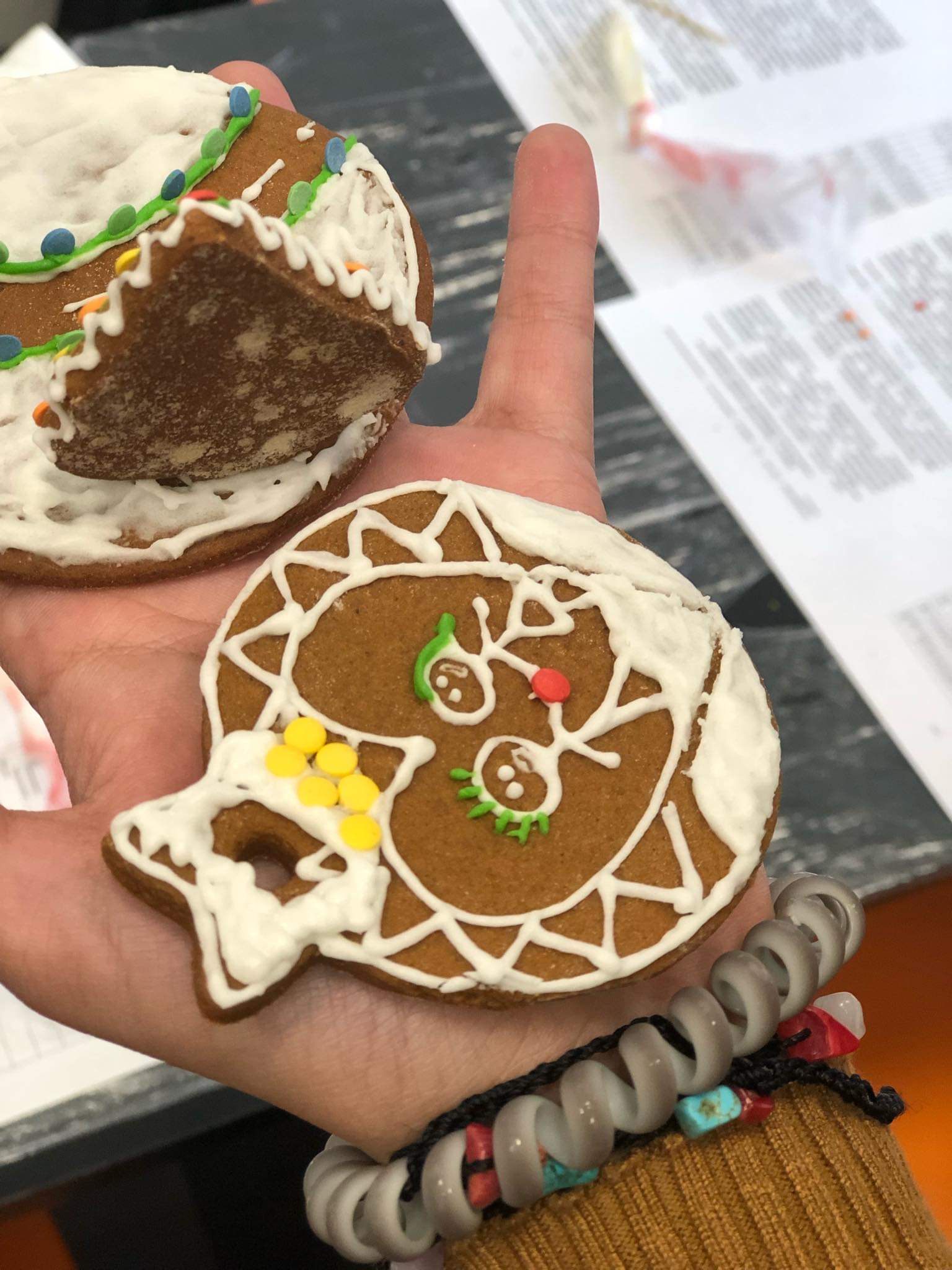Задача, поставленная Мастером, была не самой простой: нужно было не только расписать пряники, но и затем, соединить все в единую новогоднюю композицию. Конечно, сам по себе пряник не такой пластичный, как торт и сахарная мастика, но и из него тоже можно создать необычные объемные работы. Или, как их принято сейчас называть, 3-D. в композицию. Полная свобода и полет фантазии. Для начала мастерица показала образец, научила делать контур и украшать пряник готовой разноцветной посыпкой, изготавливая сладкий сувенир. Самые красивые - новогодние. Елочки, елочные игрушки, звездочки и домики.