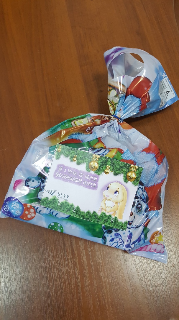 Узнав о намеченной акции, в процесс подготовки новогодних гостей с энтузиазмом включился председатель профкома БГТУ Георгий Голиков и наши спонсоры – ОАО «Колос».