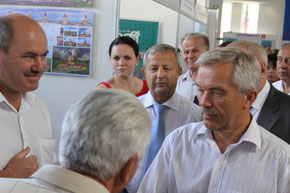 Экспозицию нашего университета губернатору Белгородской области Е.С.Савченко представил ректор БГТУ им. В.Г.Шухова, доктор экономических наук, профессор Глаголев Сергей Николаевич
