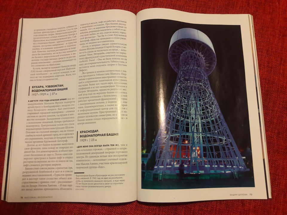 Журнал National Geographic напечатал статью, о том, что математический термин ГИПЕРБОЛОИД ВРАЩЕНИЯ = гениальные ШУХОВСКИЕ БАШНИ, а изначально конкретно функциональное ИНЖЕНЕРНОЕ СООРУЖЕНИЕ = АРХИТЕКТУРНЫЙ ШЕДЕВР.