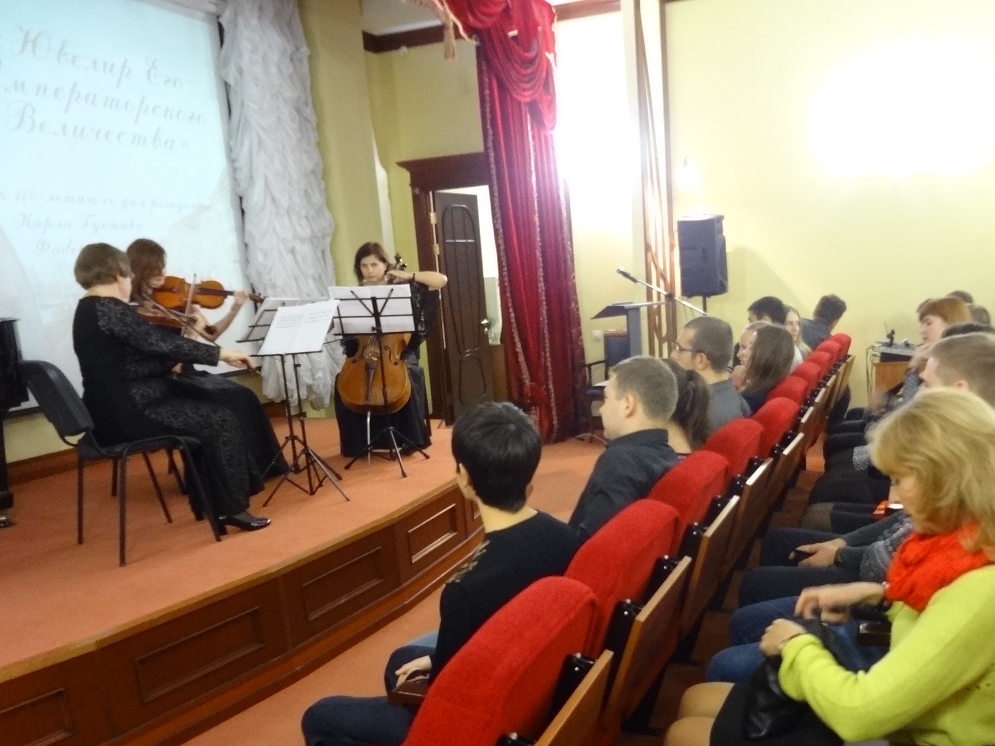 10 ноября 2016 года студенты и сотрудники МВК БГТУ им.В.Г.Шухова побывали в Белгородском государственном художественном музее на фотопрезентации работ знаменитого ювелира, поставщика императорского двора Карла Фаберже. Уникальный талант,колоссальное трудолюбие , безупречный вкус , это все о нем. Присутствующие в конференцзале с интересом слушали рассказ ведущей, сопровождавшийся редкими фотографиями. К слову сказать, Фаберже был дружен с В .Г. Шуховым. И в знак признания таланта великого учёного, к 70- летию Владимира Григорьевича, изготовил и подарил виньетку из серебра с его портретом.