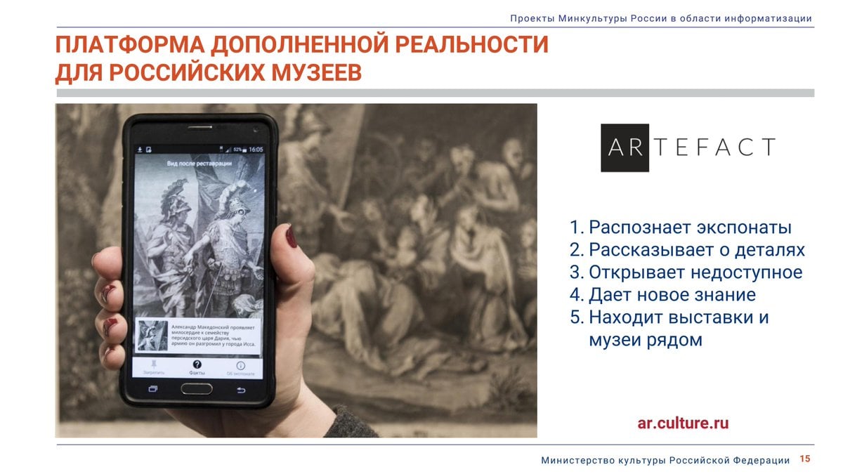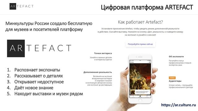 Во многих учреждениях культуры работает платформа "Артефакт"-мобильный гид. Можно убедиться на собственном опыте на сколько это удойно и доступно. Наводите камеру телефона на экспонат и окунитесь в новую реальность. Никогда еше персональные экскурсии не были так доступны.