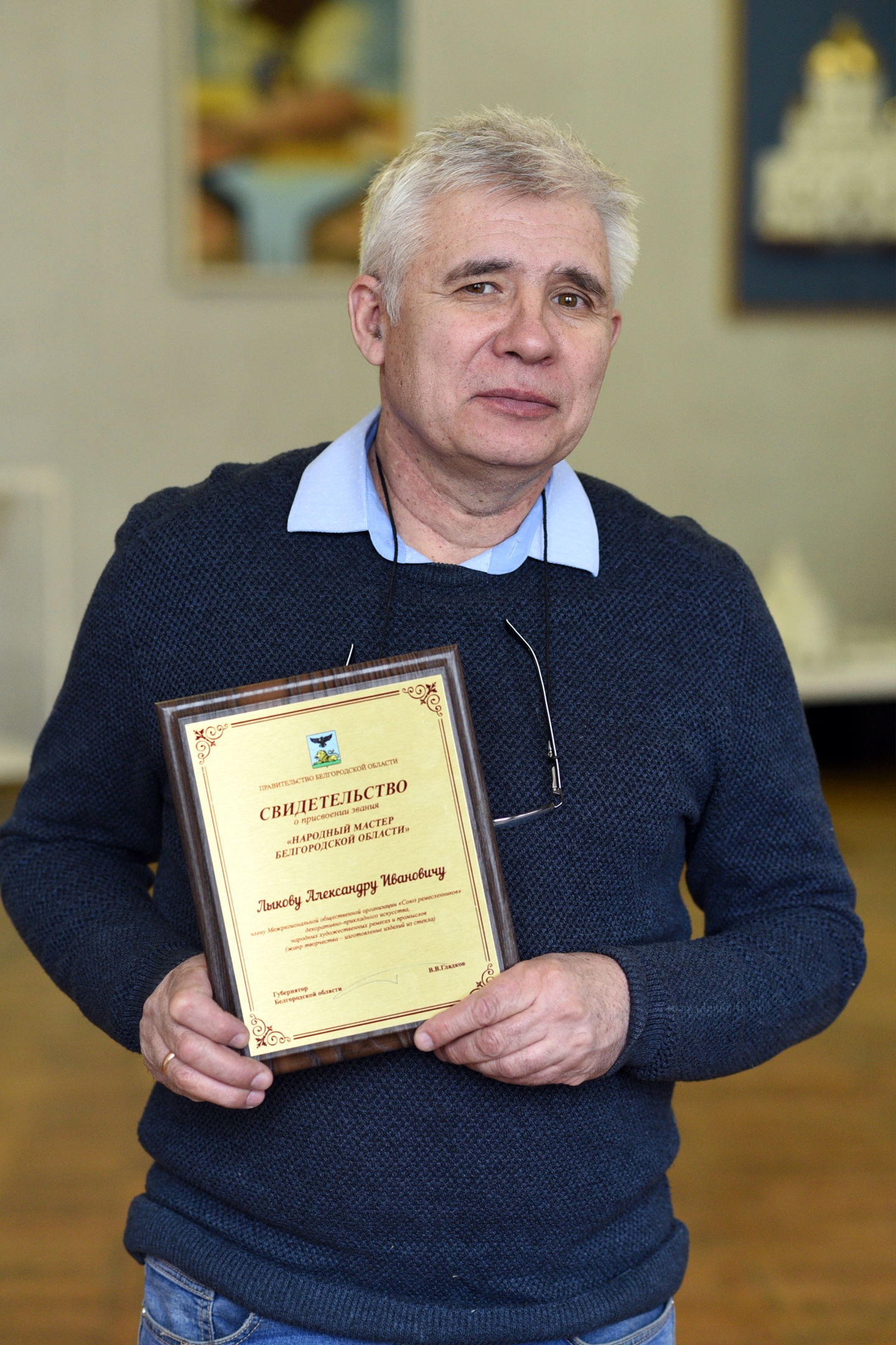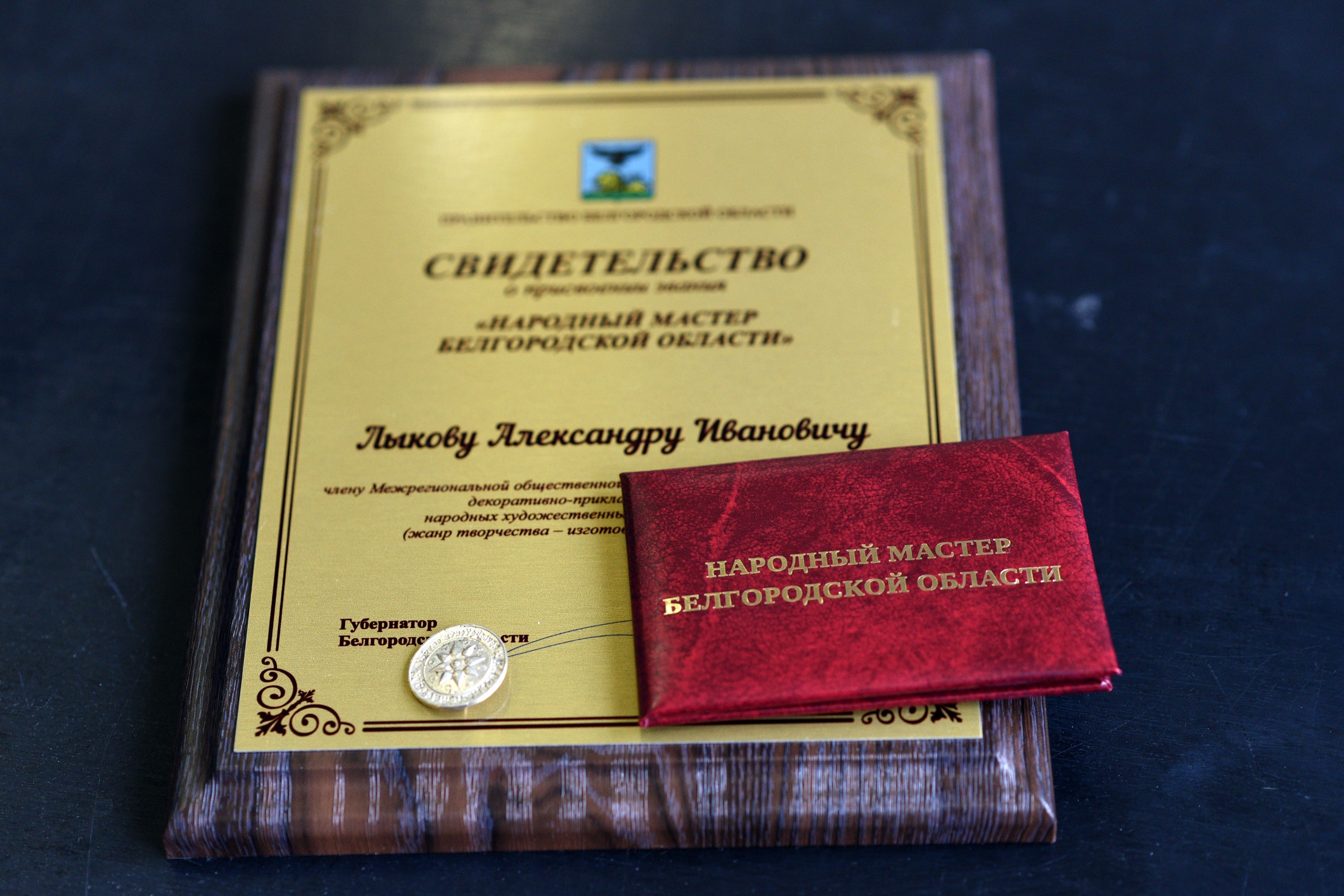 Свидетельство и удостоверение Александру Ивановичу Лыкову вручил на торжественной церемонии губернатор Белгородской области Вячеслав Владимирович Гладков.
