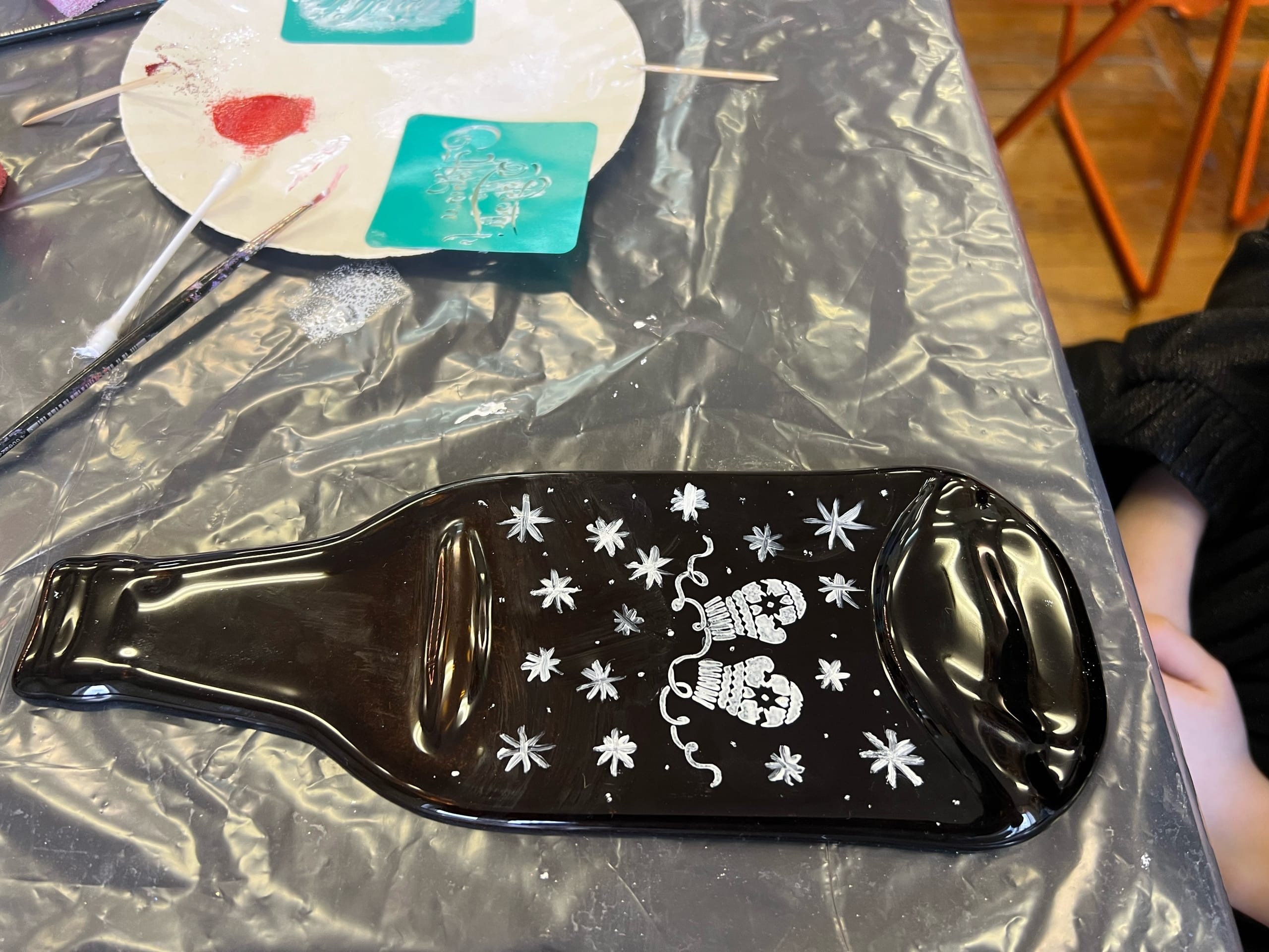В Выставочном комплексе прошёл мастер-класс по росписи бутылок. В течение часа ребята трудились над созданием новогодних сувениров. В творческом процессе они узнали, как работать со стеклом, какими способами можно украсить готовые изделия и превратить в подарки для родных и близких.