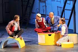Денискины рассказы» Виктора Драгунского — классика отечественной литературы для детей. Спектакль по произведениям этого замечательного цикла получился динамичным, живым. Казалось бы, реалии 60-х, запечатленные в «Денискиных рассказах», сильно отличаются от нашей жизни. Но авторы спектакля подошли к ним удивительно бережно, уважительно. И сегодняшние дети в зале реагируют очень бурно, с пониманием! Оказывается, и сейчас можно удивить ребенка светляком в коробочке, хотя у каждого в руке светится айфон. А сколько сочувствия к страдальцу Дениске, которого заставляют есть манную кашу! Частушки «Папа у Васи силен в математике» тоже встречают самый горячий прием детской аудитории — видимо, это вечный сюжет… Режиссер Рустем Фесак и художник Ольга Васильева обозначают эпоху, в которой происходит действие, но лишь штрихами. Например, почти все герои одеты так, как им было положено по статусу: школьник Мишка и милиционер — в соответствующих формах, мама и вредная гостья Марья Петровна — в платьях и прическах 60-х, растерянный прохожий — в плаще с ватными плечами и в фетровой шляпе. А Дениска — такой, каким может быть восьмилетний мальчик сегодня: в мешковатых штанах, кедах.