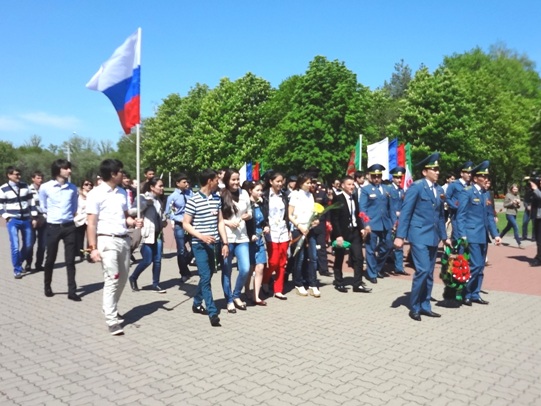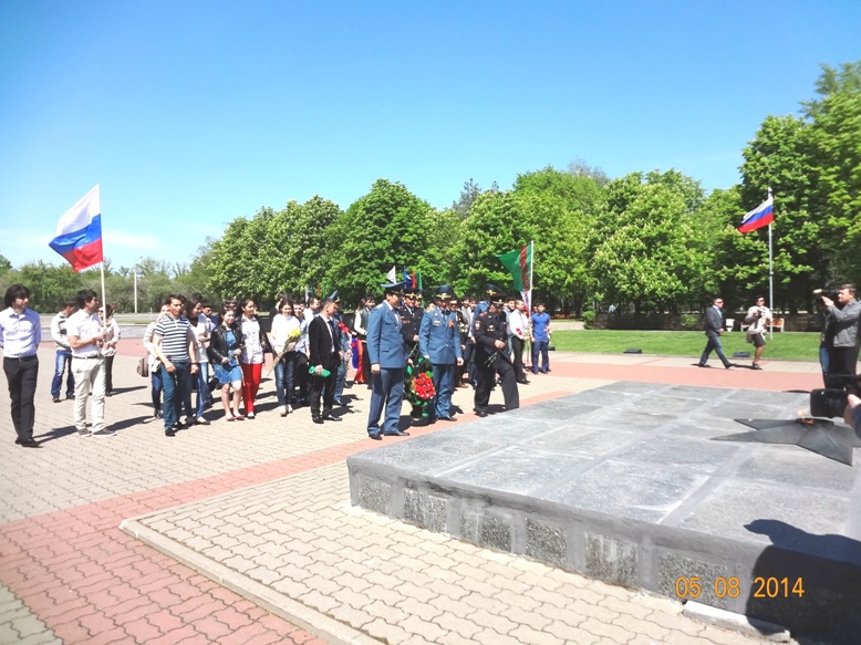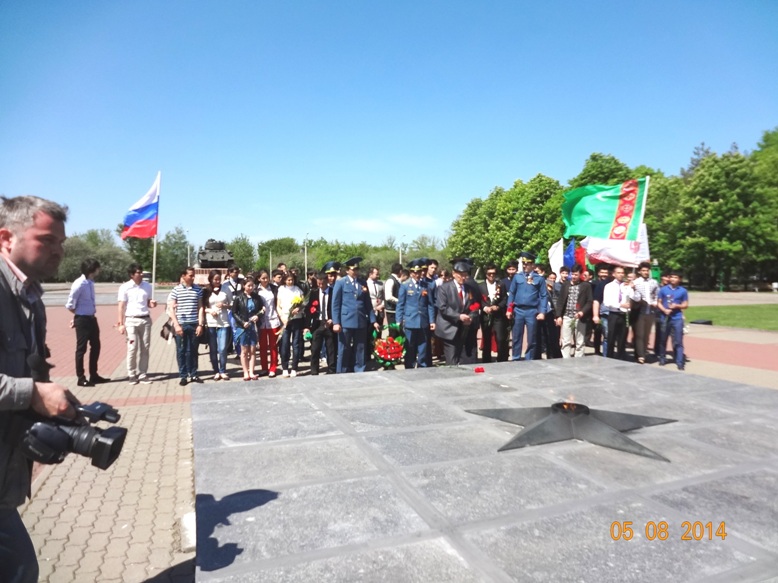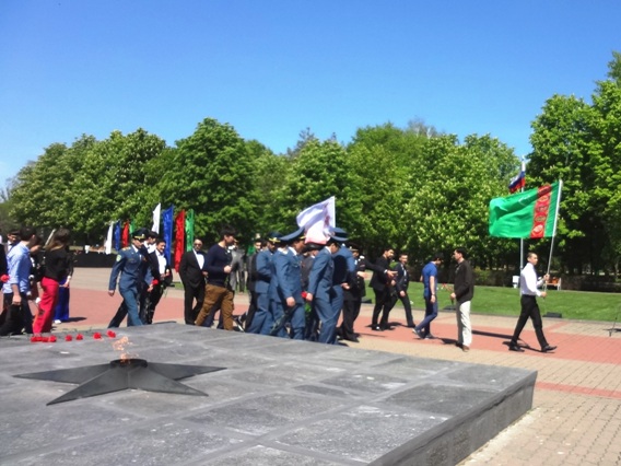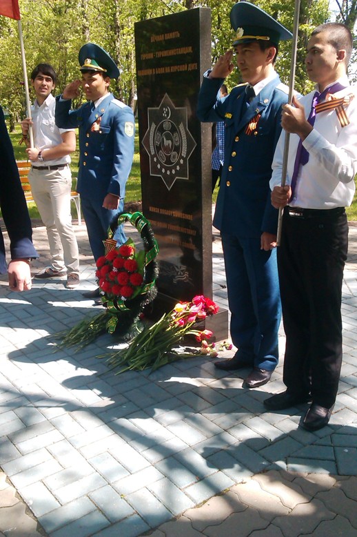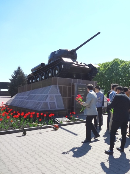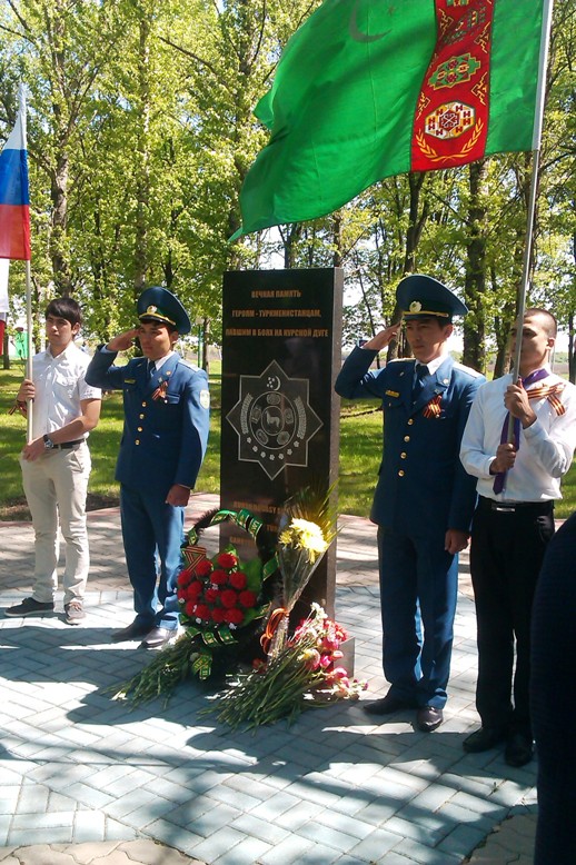 8 мая, студенты из Туркменистана, обучающиеся в БГТУ им. В.Г.Шухова, почтили память земляков, погибших на Курской Дуге. В этом сражении полегло около двух с половиной тысяч героев из бывшей союзной республики. Ребята побывали в Яковлевском районе, где возложили цветы и венки к Вечному огню и мемориалу павшим воинам-туркменистанцам. Этот памятник был открыт в мае 2011 года. Тогда на торжественной церемонии побывал глава дипломатической миссии Туркменистана в России Халназар Агаханов.