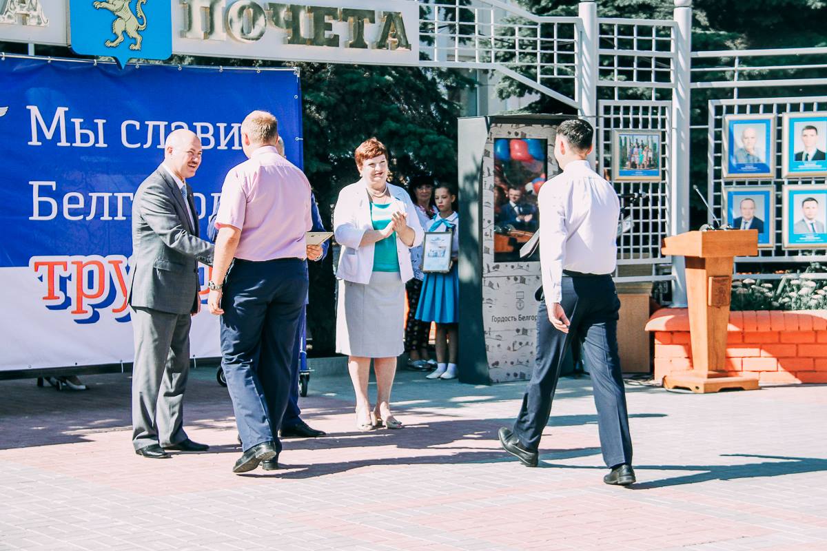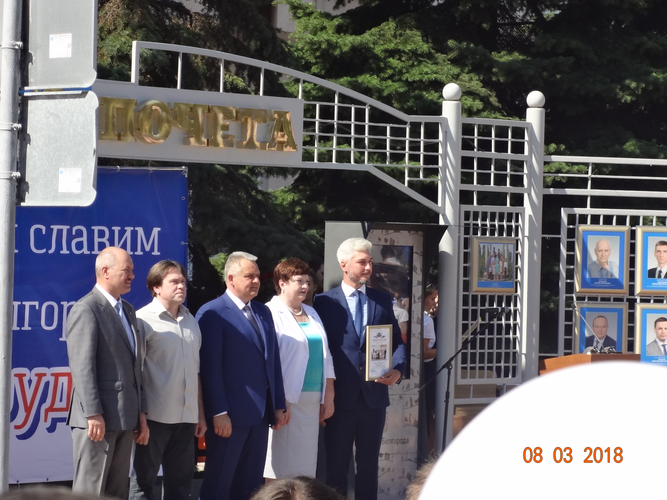 Ректор опорного университета, профессор, председатель Белгородского городского совета Сергей Глаголев, мэр Белгорода Константин Полежаев, депутат горсовета, председатель Белгородской областной организации Общероссийского профсоюза работников жизнеобеспечения Любовь Киреева в канун Дня города 5 августа вручили свидетельства о занесении на городскую Доску Почета лучшим коллективам и труженикам города Белгорода.