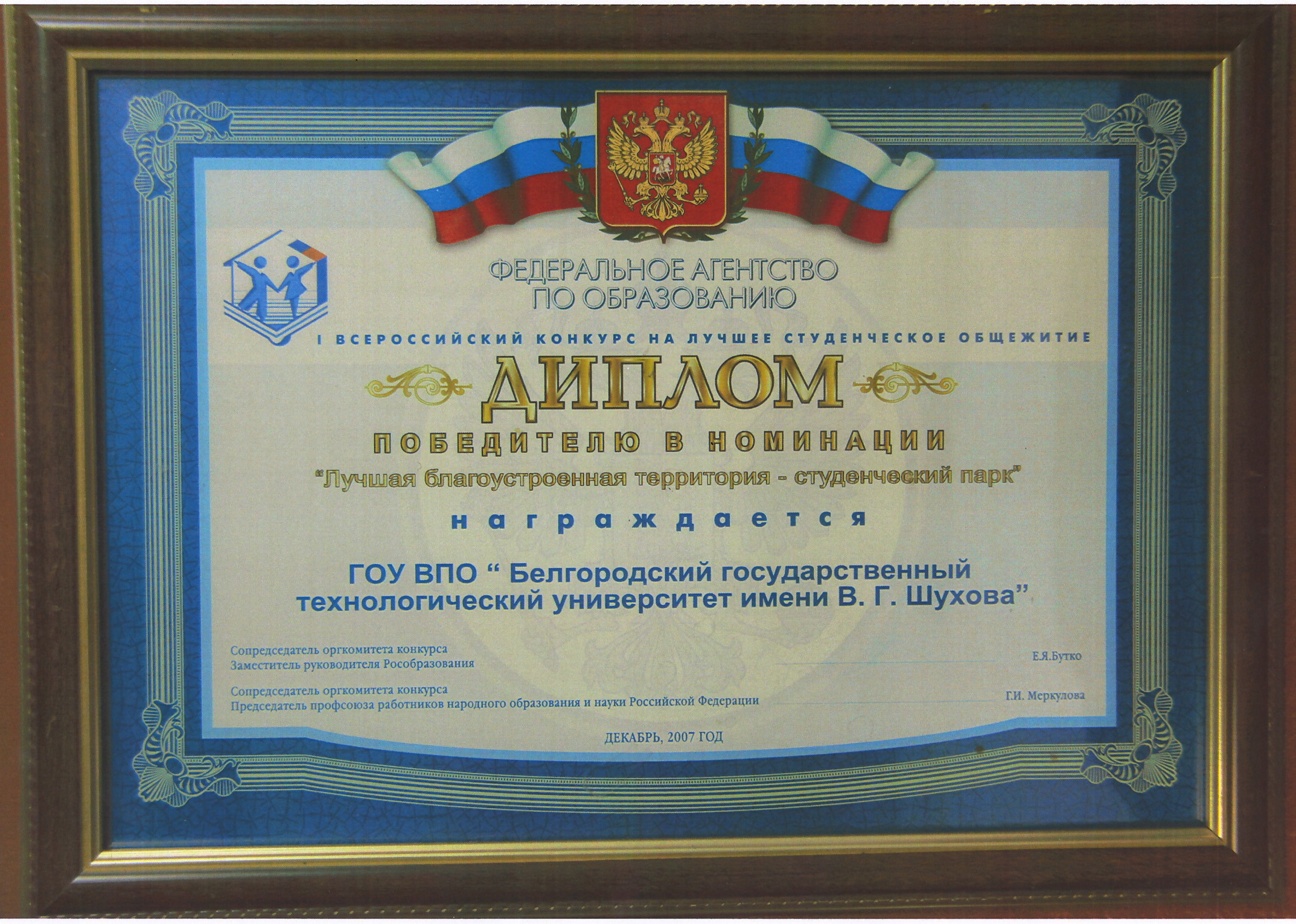 – по итогам 2008 г. вуз стал победителем всероссийского конкурса студенческих общежитий и признан Федеральным агентством по образованию и Центральным советом профсоюза лучшим образовательным учреждением по содержанию студенческого городка;