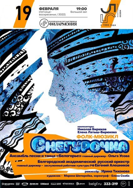 Друзья, смешим сообщить, что 19.02.22 в 18:00 в большом зале Филармонии состоится Фолк-мюзикл «Снегурочка». По мотивам одноимённой пьесы-сказки Александра Островского (Композиторы – Николай Бирюков и Елена Латыш-Бирюкова).
