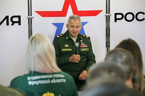 Министр обороны Российской Федерации встретился с представителями Российских студенческих отрядов по случаю начала реконструкции восточной ветки Байкало-Амурской магистрали. Введение этой дороги в эксплуатацию увеличит транспортные возможности Восточной Сибири. Окончание работ ожидается к концу 2024 года.
