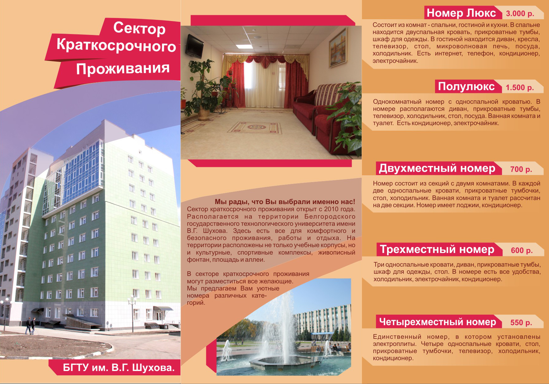 Прейскурант на номерной фонд гостиницы БГТУ им. В.Г. Шухова